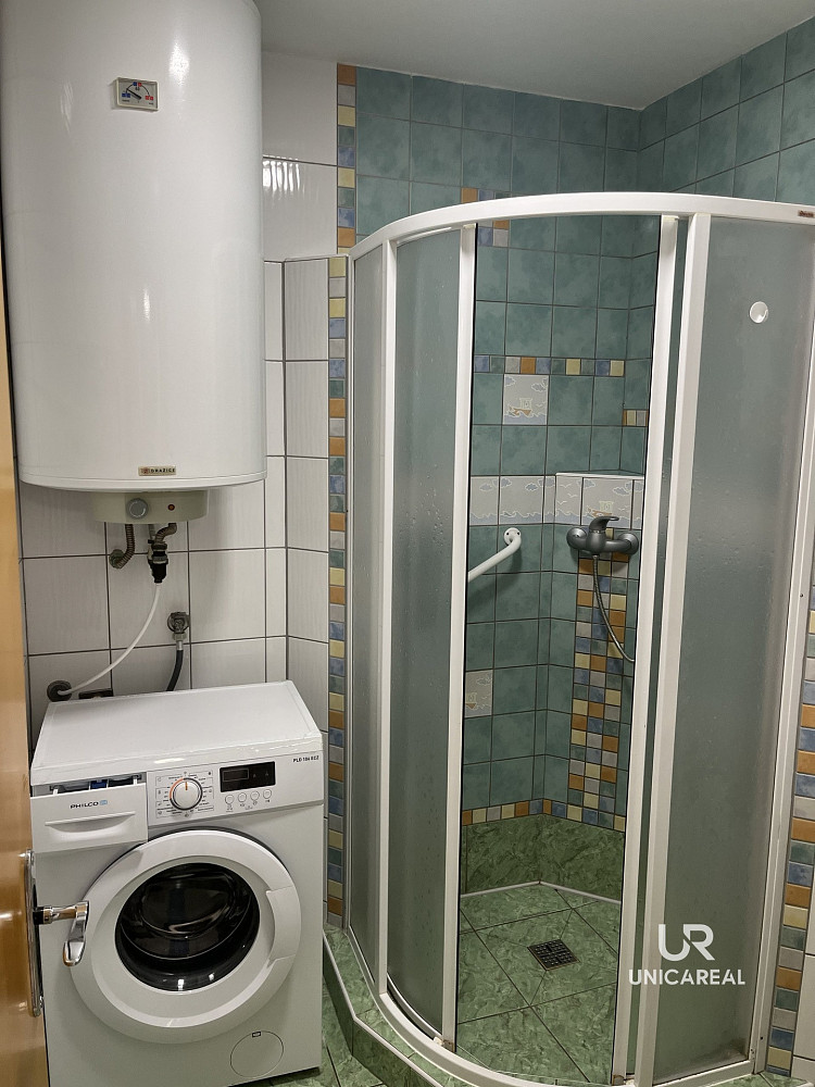 Koupelna 3 m² je vybavena umyvadlem se sprchovým koutem, pračkou a elektrickým bojlerem.. Samostatná toaleta. Nepostradatelnou součástí k uložení potřebného je i velmi praktická šatna/komora 3 m², přímo v bytě.