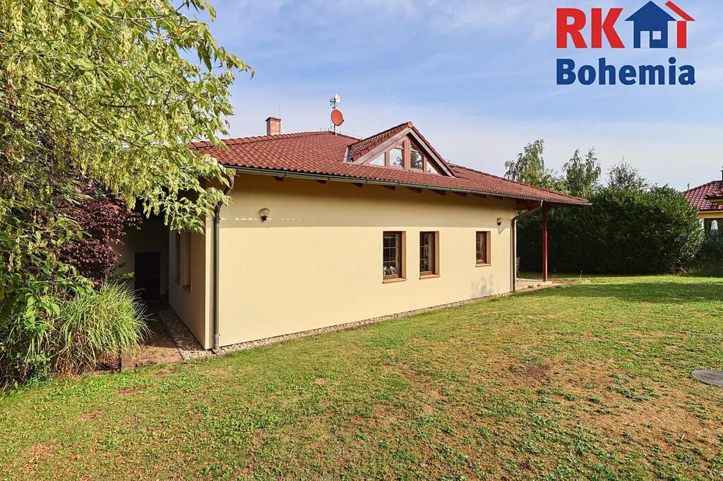 Pozemek je mírně svažitý a celý oplocený. Na zahradě se nachází vrt na vodu, zahradní domek a pergola. Je zde rozvedena závlaha a pozemek je osázen vzrostlými keři a stromy.