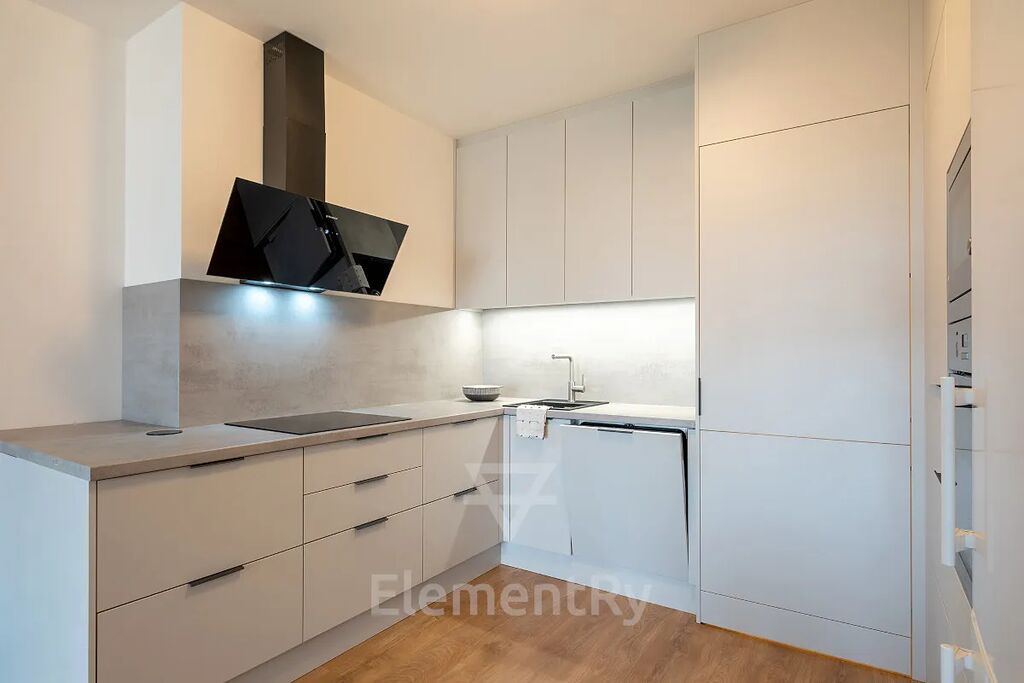 • Moderní kuchyňský kout s lednicí, mrazákem, troubou, mikrovlnnou troubou, indukční deskou a myčkou.