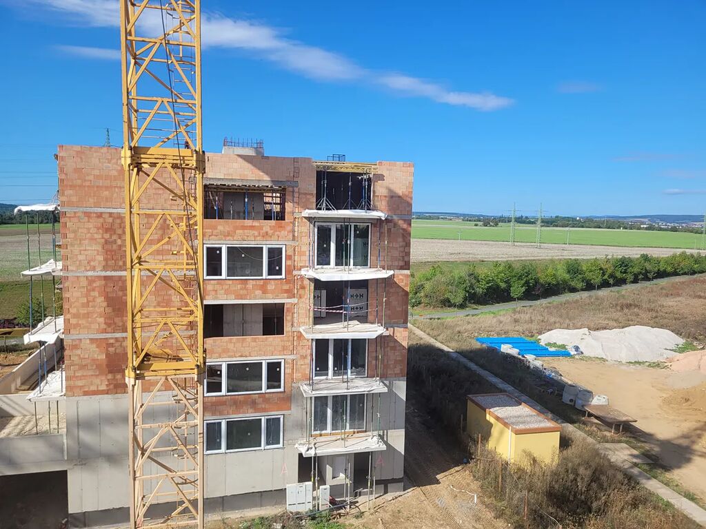 Výstavba bytů byla zahájena v říjnu 2024, kolaudace je plánována na konec roku 2026.
