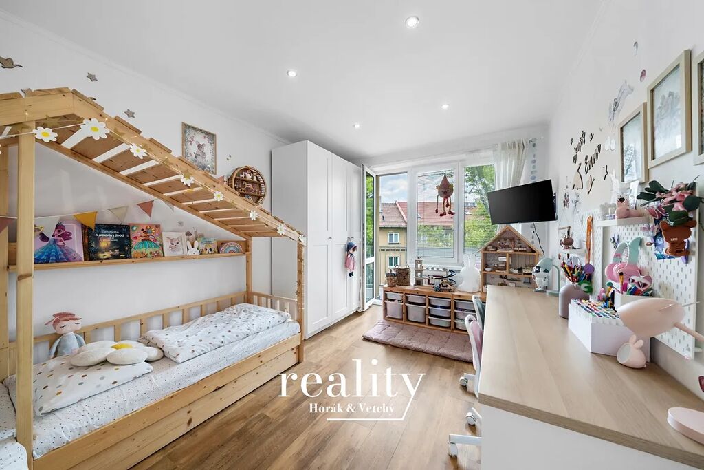 V obývacím pokoji je prosklená lodžie s útulným posezením s výhledem do zeleně, vedlejší pokoj má také lodžii.