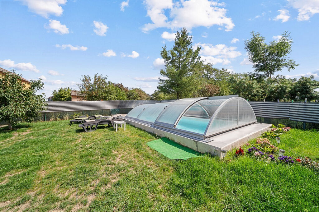 Dominantou zahrady je zcela nový zastřešený bazén (instalace 4/2025) o rozměrech 6 × 3 × 1,5 m, vybavený profesionální filtrací a solinátorem, ze zesíleného moderního bílého plastu 8 mm (vše v záruce). Skvělým bonusem je také privátní sauna, která vám umožní celoroční relaxaci a péči o zdraví v pohodlí vlastního domova.