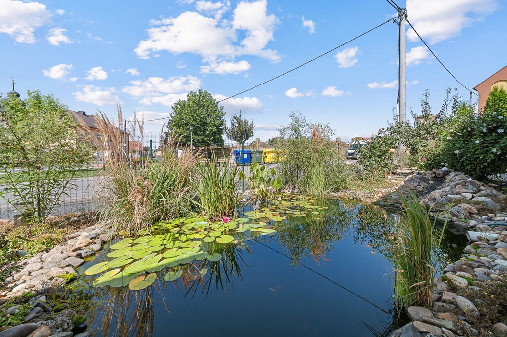 Součástí zahrady je dále polykarbonátový skleník o rozměru 6 × 3 m, vhodný pro pěstování vlastní zeleniny, romantické jezírko s rybami a vlastní studna, která slouží k pohodlnému a ekologickému zalévání. Nechybí ani praktický zahradní domek na nářadí 3 × 2,3 × 2,1 m.