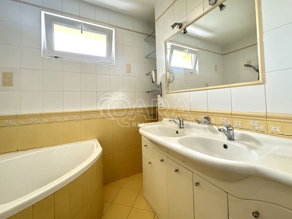 Prošel rekonstrukcí už před delší dobou, ale disponuje zděným jádrem s rohovou vanou a dvěmi umyvadly. V pokojích je převážně PVC v koupelně a části předsíně pak dlažba.