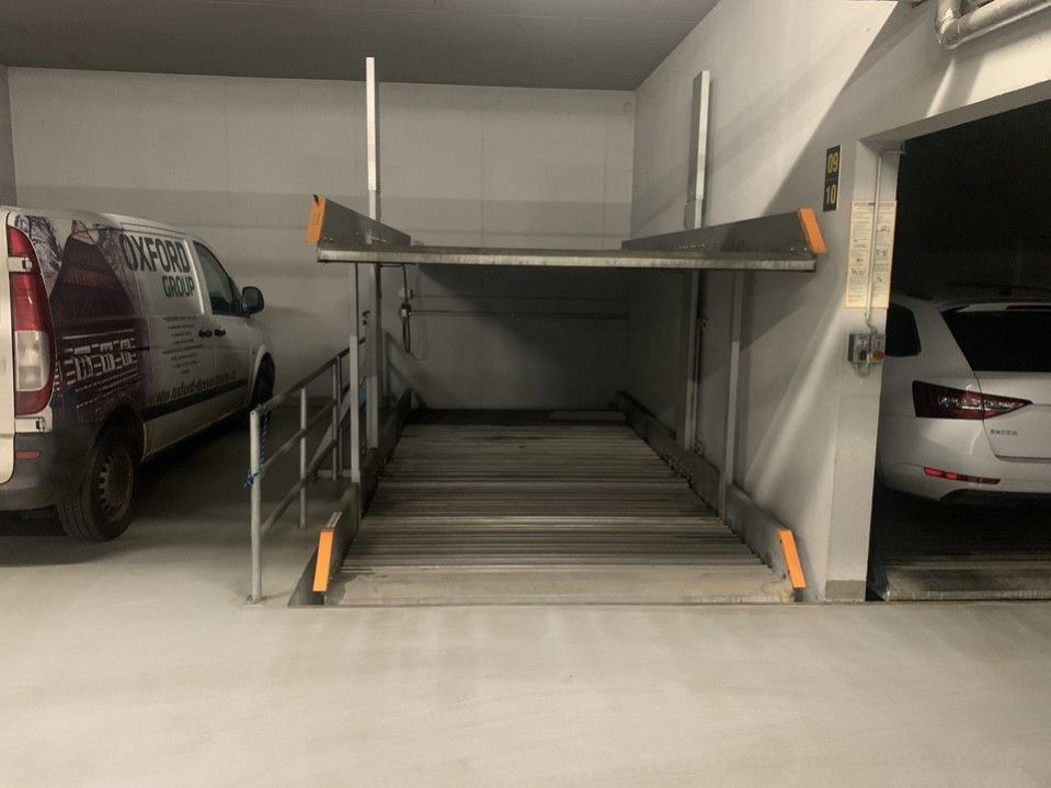 Stání se nachází v zakladači v moderní garáži s bezpečným přístupem vjezd je možný pouze pro rezidenty a nájemce garážových stání prostřednictvím čipu nebo dálkového ovládání.
