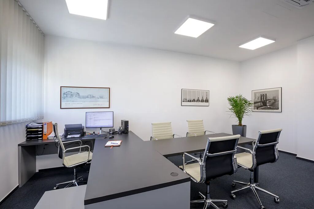 Kanceláře v ISO OFFICE PARK se nacházejí v pěti nadzemních podlaží. V rámci pronájmu můžete využít zasedací místnost, kuchyňku, sociální zařízení a všechny společné prostory.