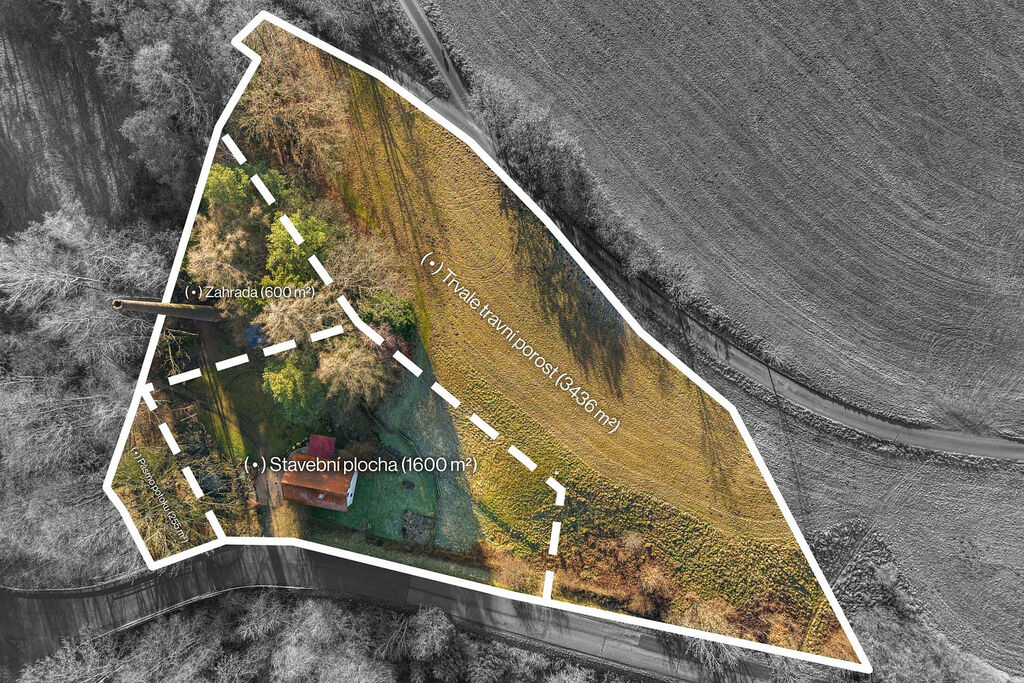 Další část pozemku tvoří svažitý trvalý travní porost o rozloze 3436 m², který nabízí možnost terasovité zahrady nebo jiné kreativní využití.