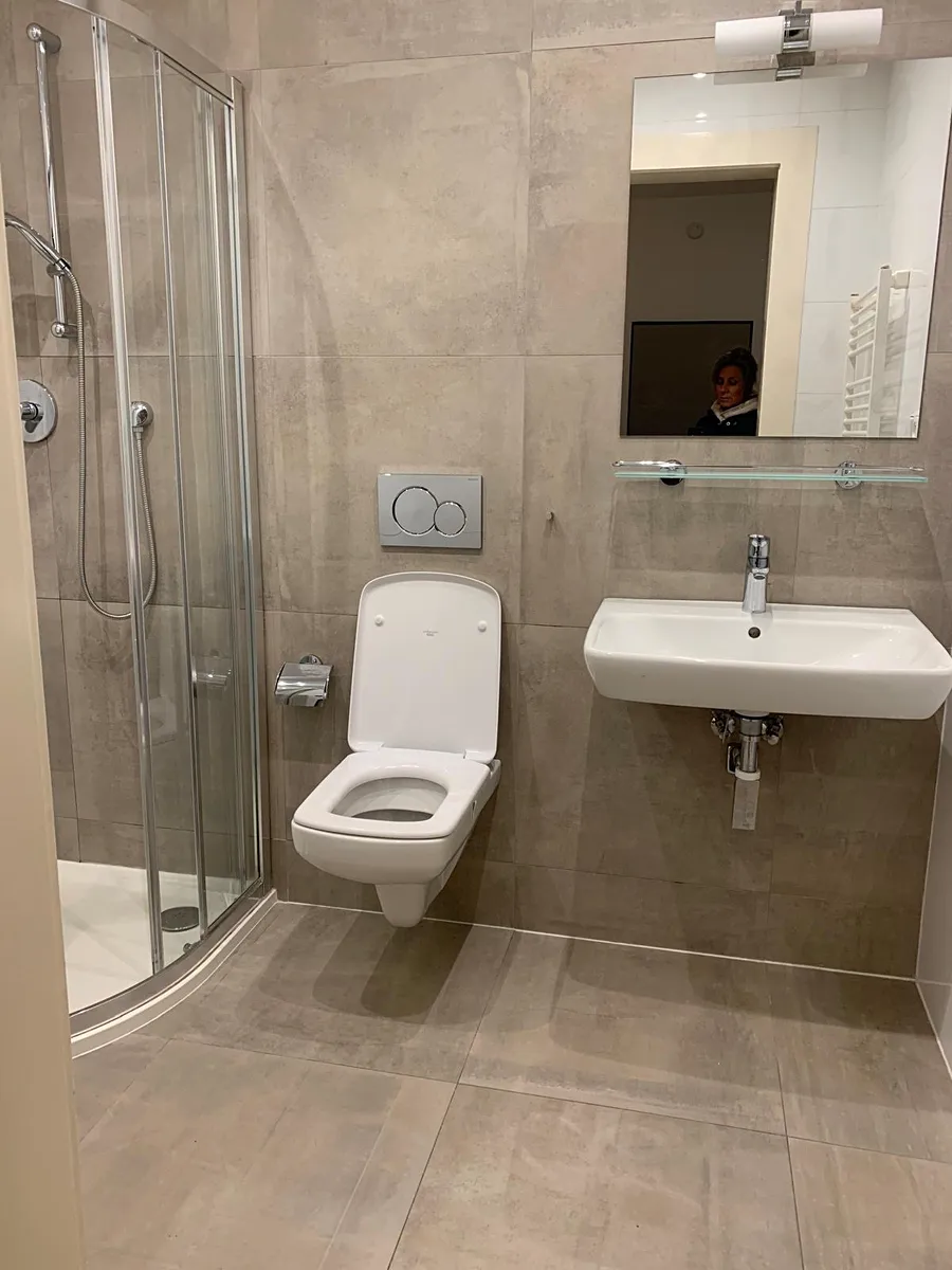Byt se skládá z obývacího pokoje s kuchyňským koutem, ložnice, koupelny se sprchovým koutem a toaletou a vstupní chodby.