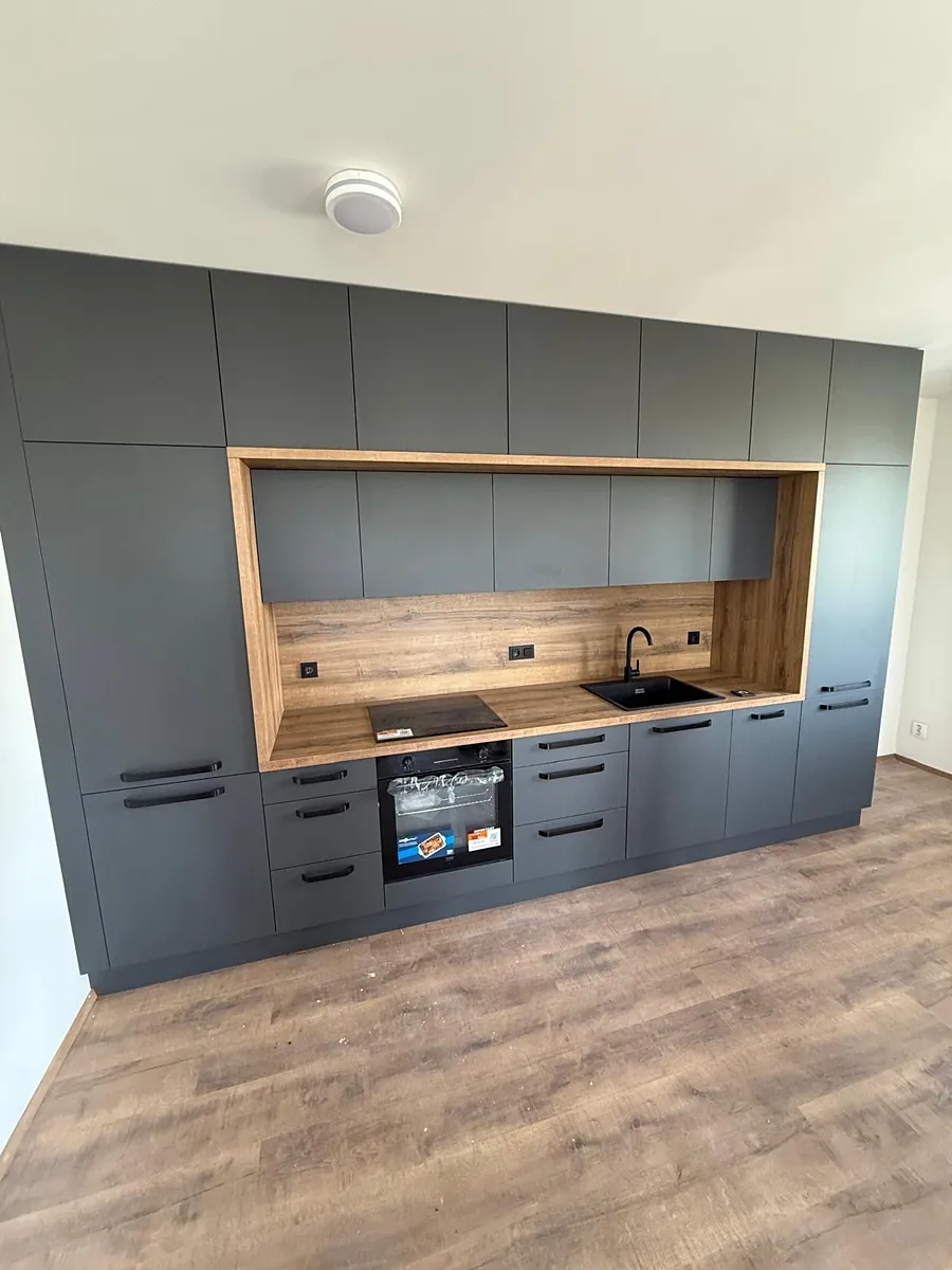 Dobře dipozičně řešený byt, prostorný obývací pokoj s kuch.linkou včetně veškerých vestavěných spotřebičů od firmy Beko,