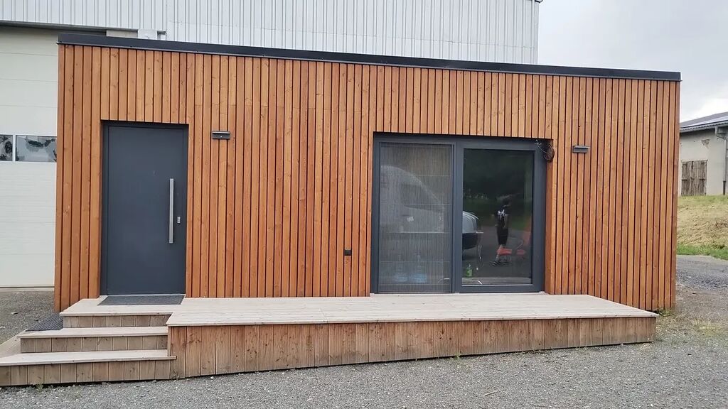 Vhodné jako kancelář, zahradní dům, rekreační chata nebo menší bydlení. Dřevostavba je připravena k okamžitému využití.