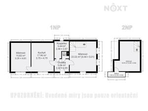 1NP - zádveří, koupelna, samostatné WC, kuchyně, pokoj, obývací pokoj