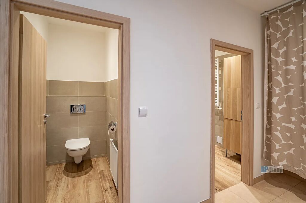 Byt je částečně zařízený - viz. fotografie a ve velmi hezkém stavu, co hezkém ba přímo v novém kabátě. Byt prošel důkladnou, pečlivou, prostě generální rekonstrukcí. Aby se nájemníkům dobře bydleno. Je vybaven novou kuchyňskou linkou vestavěným skříněmi. V kuchyni je elektrická trouba a indukční varná deska, lednice s mrazákem. V bytě je dále šatní skříně a to formou samostatné místnosti - sousedící s ložnicí. V pokojích jsou vinylové podlahy, v předsíni a koupelně je dlažba. Koupena je vybavena vanou, pračkou se sušičkou. WC je samostatně odděleno.