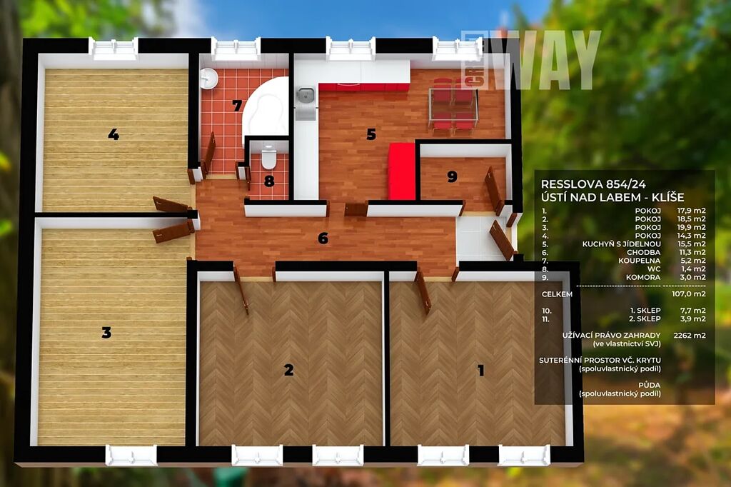 - Byt 4+1 po rekonstrukci (2015) ve 3. patře cihlového domu