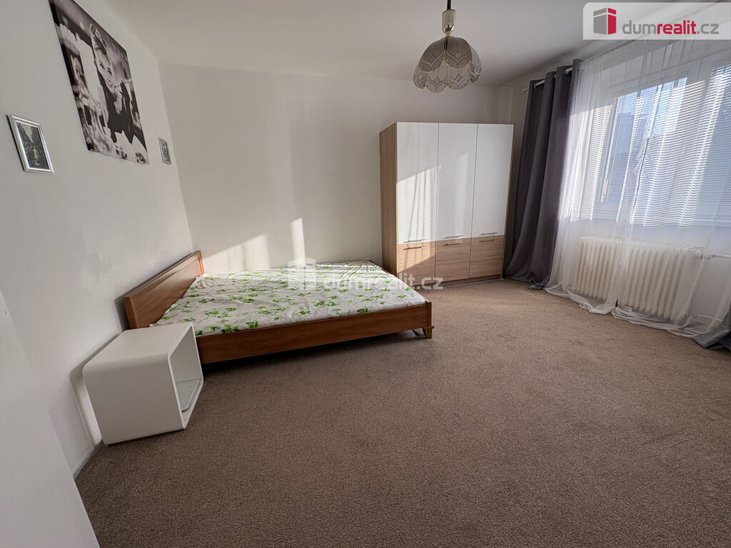 Při vstupu do bytu je po pravé straně koupelna se vanou a WC. Na proti je kuchyň, kde se nachází kuchyňská linka s elektrickým sporákem, pračka, lednice a stůl se židlemi. V samostatném pokoji je manželská postel a skříň. V bytě jsou plastová okna, topení a ohřev vody je dálkově.