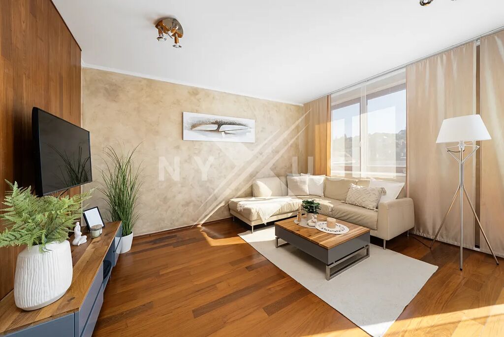 Jednou z největších výhod bytu je jeho umístění. Přímo před domem je zastávka MHD, odkud se dostanete za 7 minut přímým spojem na stanici metra Budějovická. Cca 450 m od domu je také tramvajová zastávka, ze které se dostanete pohodlně za pár minut do centra Prahy.
