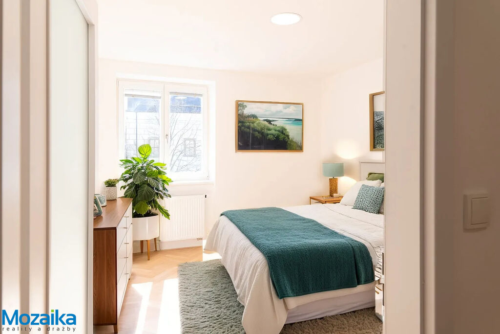 Vstoupíte do světlého a vzdušného bytu, který prošel náročnou celkovou rekonstrukcí. Interiér je navržen s důrazem na funkčnost a moderní styl bydlení. K dispozici máte moderní kuchyňskou linku vybavenou vestavnými spotřebiči, která potěší každého, kdo rád vaří. Díky vestavným šatním skříním na chodbě budete mít dostatek úložného prostoru pro všechny své věci a byt zůstane vždy uklizený a přehledný.