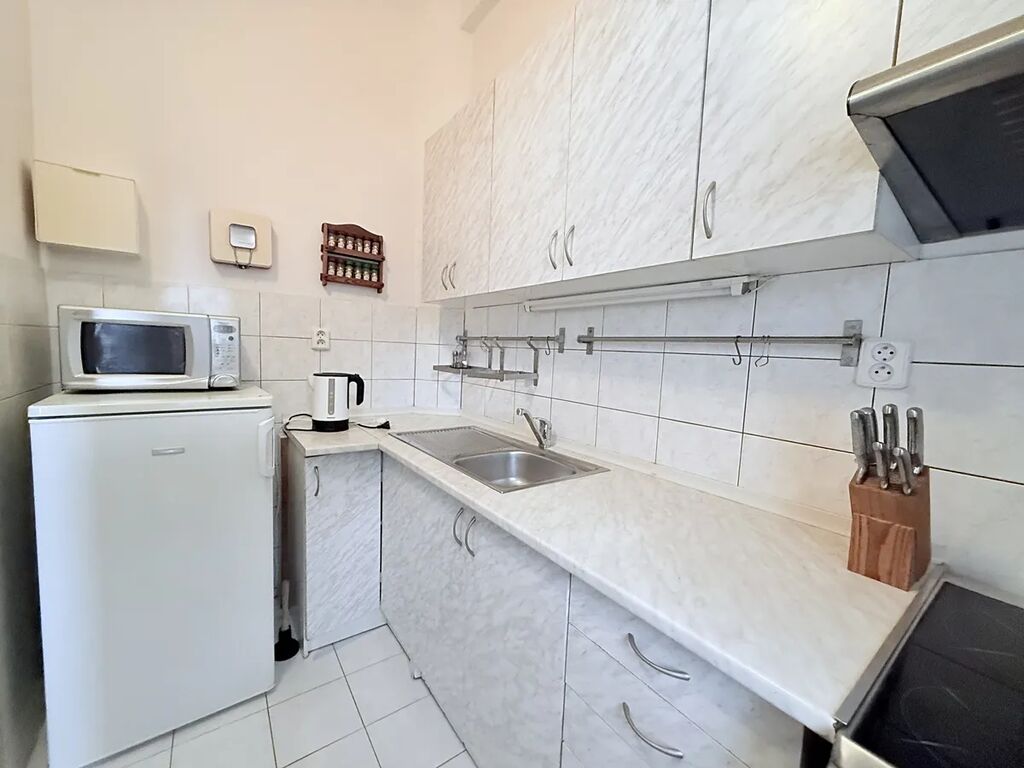 Byt je částečně vybavený a díky své dispozici poskytuje dostatek prostoru a pohodlí. K dispozici je velký samostatný obývací pokoj, ložnice s vlastní koupelnou, samostatná toaleta, menší kuchyňka a prostorná chodba. V kuchyni je nová lednička a nová menší pračka. Součástí vybavení jsou také vestavěné skříně, které zajišťují dostatek úložných prostor. Byt je ideální pro pár, který hledá klidné bydlení v dobré dostupnosti do centra.