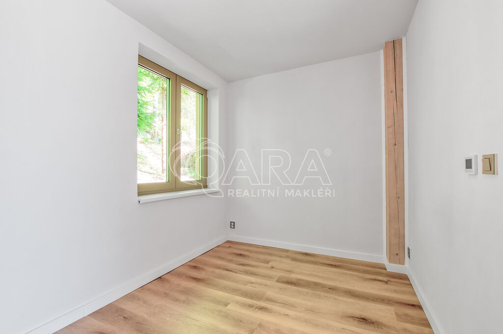 Objekt je osazen kvalitními hliníkovými okny s trojskly a speciální barevnou úpravou. Tato okna zajišťují vynikající tepelné i zvukové izolační vlastnosti a úsporu energií. Prostory podtrhují moderní podlahové krytiny – vinylová podlaha a dlažba, které jsou nejen elegantní, ale také velmi praktické a snadné na údržbu. O stálé a příjemné teplo se postará chytré podlahové vytápění, které si pohodlně nastavíte pomocí termostatu. Odpadní vody jsou řešeny vlastní jímkou, a k dlouhé životnosti a efektivitě přispívá i plechová střecha se stříkanou izolací.