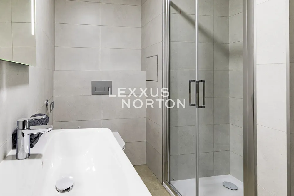 Interiéry bytů ve Vaníčkově Dvoře vynikají nadčasovou elegancí a důrazem na kvalitu. Laminátové podlahy v obytných místnostech doplňuje keramická dlažba v koupelnách a chodbách, okna s izolačním trojsklem zajišťují ticho i tepelný komfort. Koupelny jsou řešeny v moderním stylu s vanou nebo prostorným sprchovým koutem. Architekti věnovali pozornost i společným prostorám – decentní materiály, zelený vnitroblok a promyšlené detaily vytvářejí harmonické prostředí, které přirozeně navazuje na okolní zástavbu.