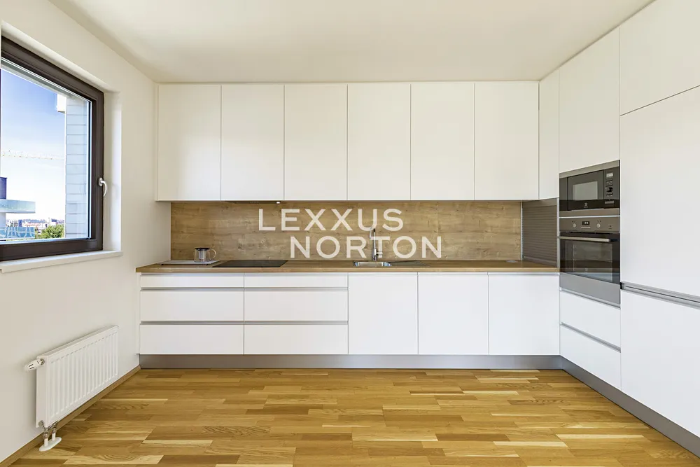 Nabízíme k pronájmu nezařízený byt 2+kk se slunnou terasou a nádherným výhledem na Vrch Vítkov v 9. patře (s výtahem) moderního komplexu Park Karlín na Praze 8 - Karlín. K bytu náleží sklep a jedno podzemní garážové stání v objektu, které je zahrnuto v ceně nájmu.