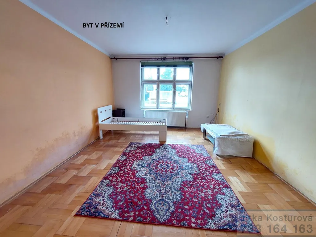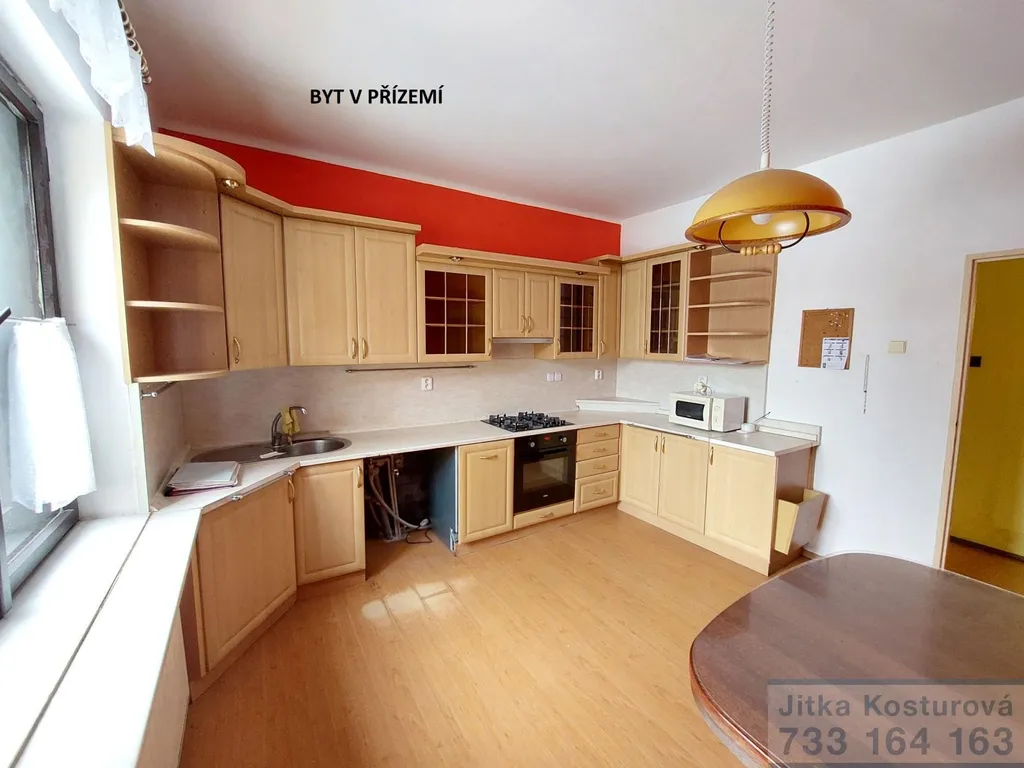 V přízemí se nachází byt o vel. 2+1 s celkovou výměrou cca 66 m2. Vstupní dveře jsou původní dřevěné, se železnými zárubněmi. V bytě se nachází vstupní chodba s korkovou podlahou, po pravé straně se vchází do 2 samostatných pokojů s podlahou z dřevěných parket. Po levé straně se nachází koupelna s umyvadlem, sprchovým koutem, WC a plynovým kotlem zn. Ariston, sloužícím k vytápění pouze tohoto bytu. Koupelna prošla rekonstrukcí cca před 10 lety. Dále je zde kuchyň, vybavená kuchyňskou linkou se spotřebiči - plynová varná deska, elektrická trouba, potravinová skříň.
