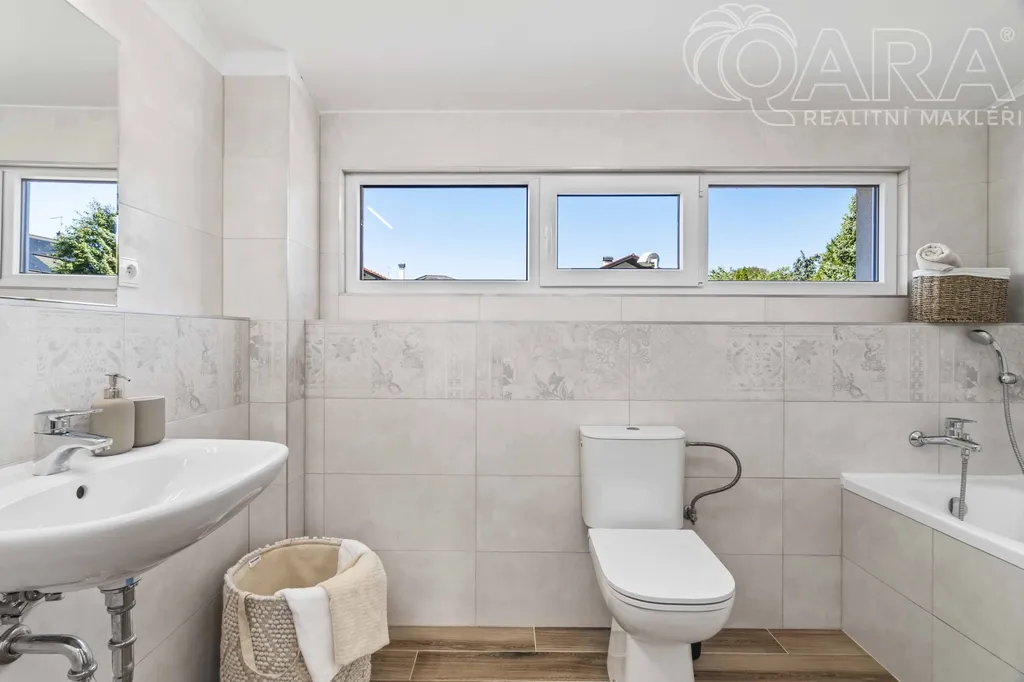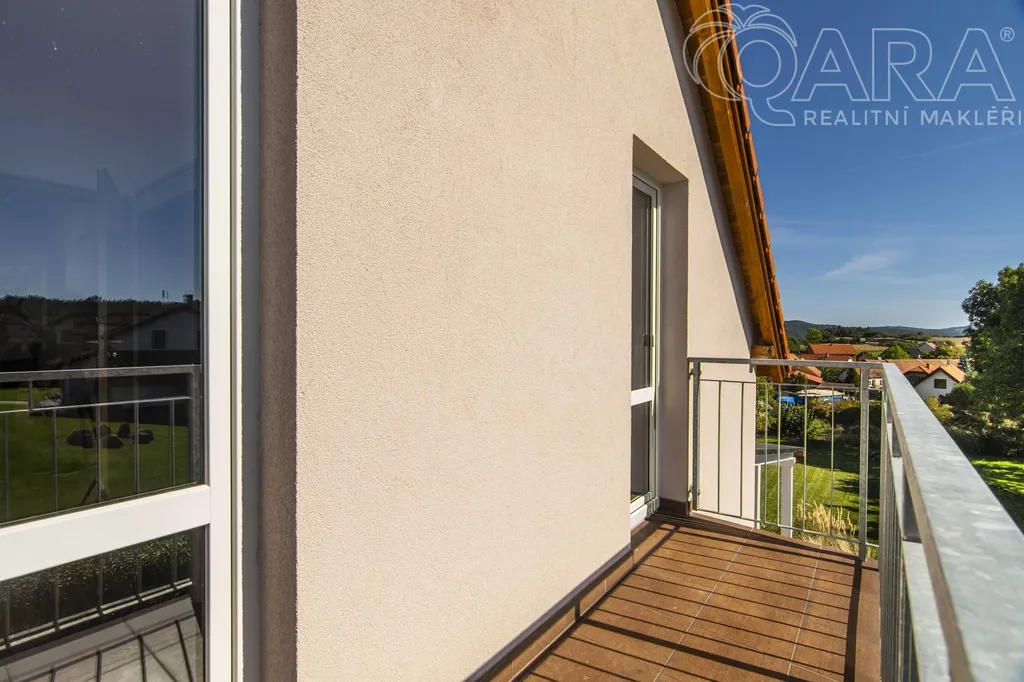 V přízemí se nachází obývací pokoj s krbem a vstupem na terasu, kuchyň s výhledem do ulice, koupelna se sprchovým koutem, technická místnost a spíž (příp. šatna). V patře jsou tři útulné ložnice a koupelna s vanou. Dům je světlý, funkční a působí velmi příjemnou, domáckou atmosférou. Vytápění zajišťuje elektrokotel Protherm (9 kW) doplněný krbovou vložkou, ohřev vody je zajištěn bojlerem zn. Ariston. Dům je energeticky úsporný (PENB – třída C). Na přání lze ponechat vybavení tak, jak jej vidíte na fotografiích (pohovka, postele, skříně apod.). Dům byl obýván jen krátce, vše je tedy ve výborném stavu.