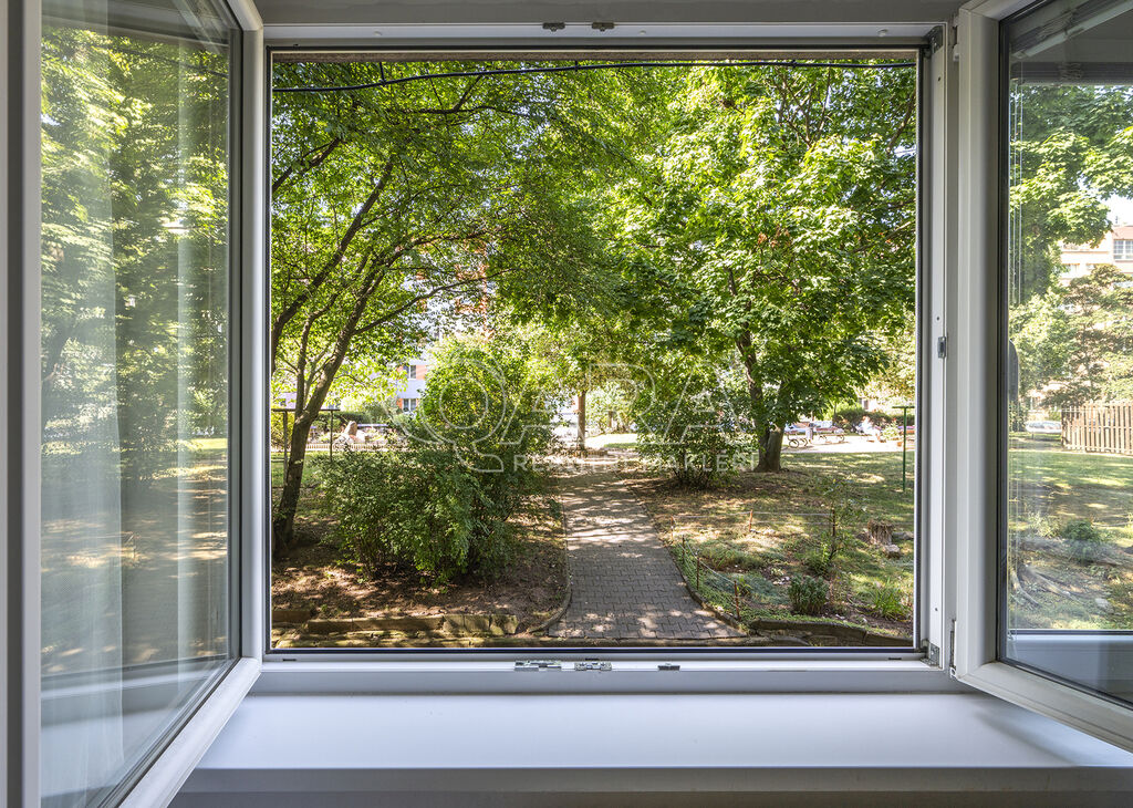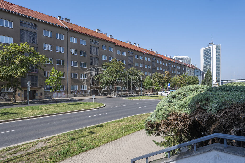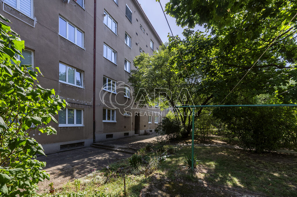 Tento byt se nachází ve zvýšeném přízemí (1. NP) cihlového domu v pražské Krči na Budějovické ulici mezi zastávkami metra C - Pankrác a Budějovická. Nižšího umístění bytu se vůbec nemusíte obávat, jelikož okenní parapety jsou 2 m nad úrovní terénu.