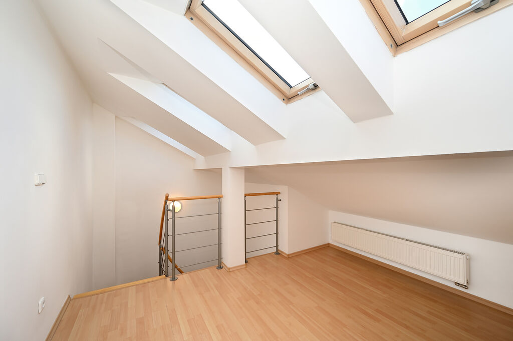Byt se nachází v posledním, 5. patře historického cihlového domu s výtahem v ulici Komunardů, v oblíbené části Prahy 7, Holešovice. Dispozičně je řešený jako 1+kk, ale s bonusem v podobě galerie, která disponuje také vlastní koupelnou s vanou, toaletou a umyvadlem. Právě galerie dodává bytu něco, co běžné 1+kk obvykle nenabízí, protože si díky ní můžete vytvořit ložnici nebo pracovnu v odděleném prostoru, zatímco spodní část bytu zůstává plnohodnotným obývacím pokojem s kuchyňským koutem. Když tedy přijde návštěva, máte daleko větší pohodlí a soukromí, které vám klasická garsonka nenabídne.