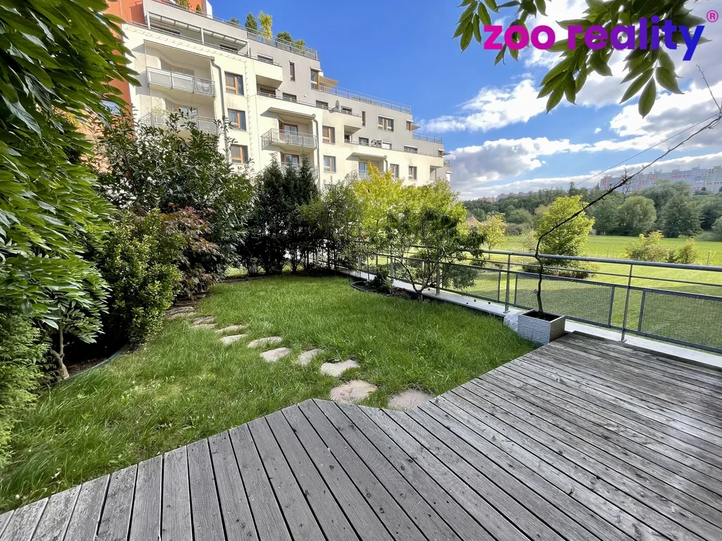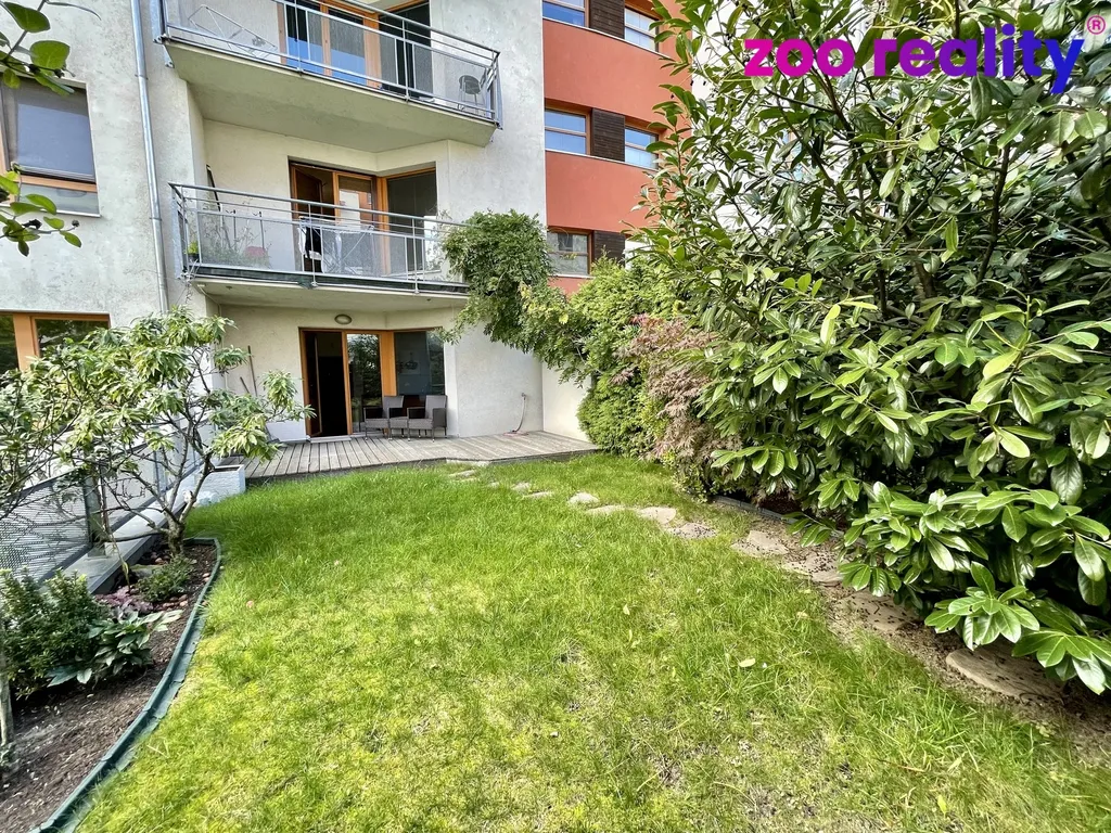 Dispozice bytu se skládá z prostorného obývacího pokoje s kuchyňským koutem (25,8m2), jehož prosklené francouzské dveře vedou na terasu a do vlastní zahrady o rozloze 56 m², což poskytuje skvělé možnosti pro relaxaci a odpočinek v soukromí. Dále byt zahrnuje ložnici (14,4m2), koupelnu s pračkou a samostatné WC. Nechybí zde ani úložný prostor v podobě komory, což je praktickým řešením pro uskladnění potřebných věcí. Bytový dům má moderní výtah.