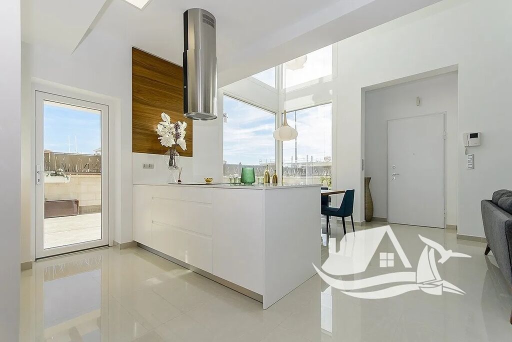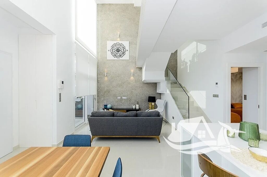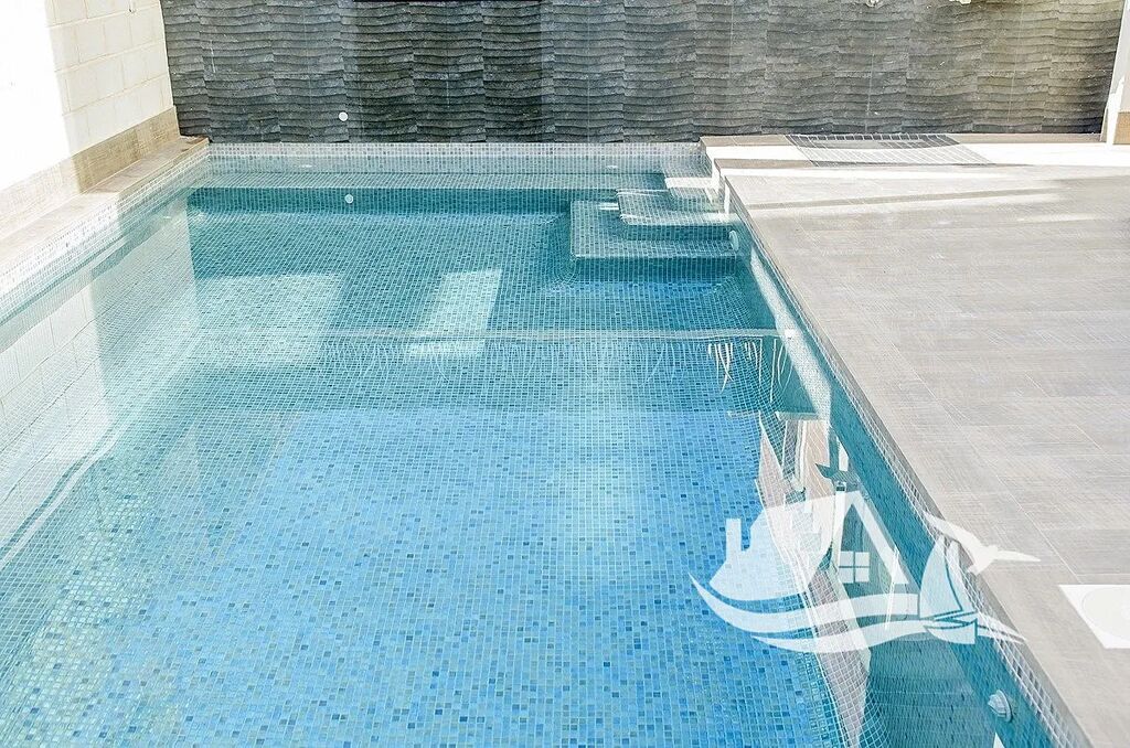 Vila nabízí celkovou plochu 125 m² a stojí na pozemku 230 m², přičemž součástí je vlastní bazén a terasa o rozloze 178 m², kde můžete trávit slunečné dny nebo večery s výhledem do zahrady a okolní krajiny. Interiér domu zahrnuje 4 prostorné pokoje a 3 koupelny, otevřený obývací prostor s kuchyní a jídelním koutem, který přirozeně propojuje jednotlivé části domu a nabízí pohodlné bydlení pro celou rodinu.