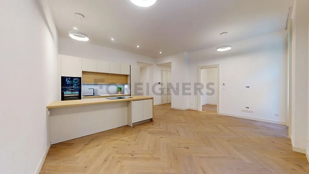 Byt bude plně vybaven kuchyňskou linkou značky STOSA včetně vestavných spotřebičů. Styl vybavení odpovídá vysokému standardu celého domu – dřevěné parkety, repasované zárubně a dřevěné dveře, kvalitní osvětlení s možností nastavení odstínu a jasu. V bytě je optický kabel, datové rozvody, videotelefon, podlahové topení s termostatem. Dovybavení bytu po dohodě s pronajímatelem možné.