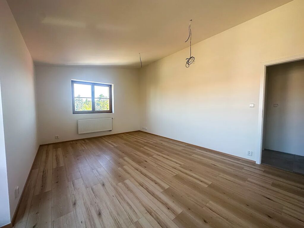 Nový byt se nachází v druhem patře cihlového domu, má dispozici 3+kk + velkou terasou, sestává se z : vstupní prostorné chodby vedoucí do obývacího pokoje s přípojkou na kuchyň, kuchyň se musi pořídit nájemce, dvou samostatných ložnic, koupelna je vybavena toaletou, vanou, umyvadlem s přípojkou na pračku, druhý samostatným WC.