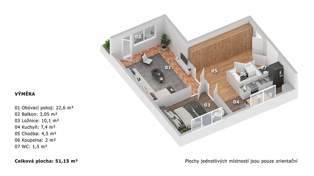 praktická dispozice se samostatnou kuchyní i WC