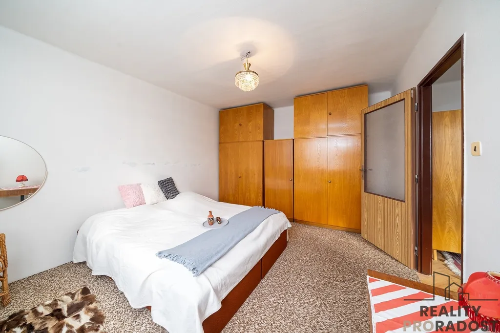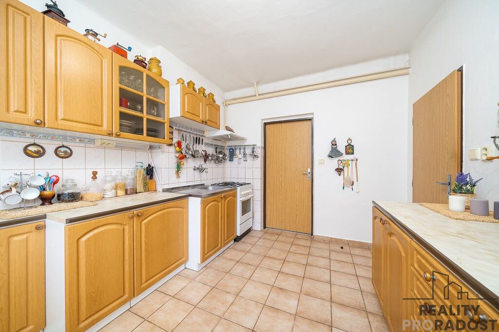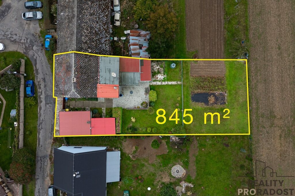 Dvougenerační rodinný dům leží na pozemku o celkové výměře 845 m2. Na pozemku se nachází také pergola s posezením a prostorná garáž, na dům navazuje technická část domu využívaná jako sklad nářadí.