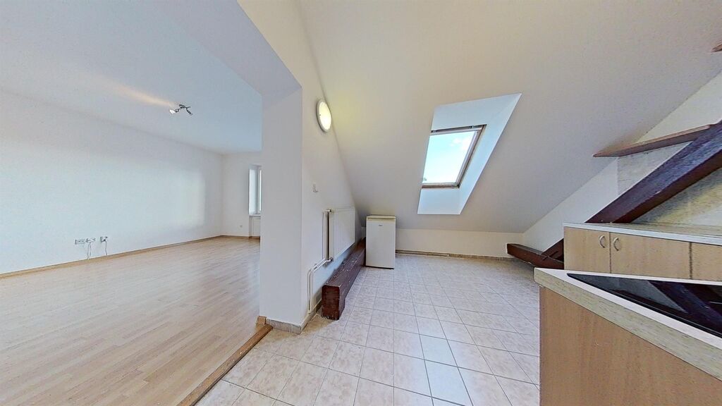 K pronájmu útulný podkrovní byt s dispozicí 1+1, který se nachází ve 2. patře (3.NP) cihlového bytového domu v klidné části města Prostějova ul. S.Manharda.