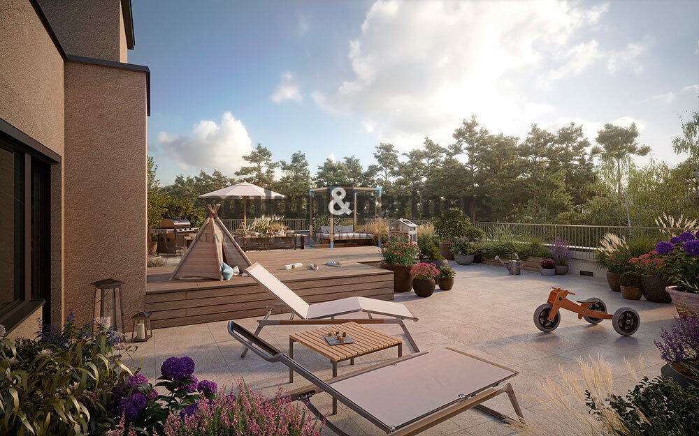 V pěší vzdálenosti se nachází park s dětskými hřišti a relaxačními zónami, který je součástí projektu.