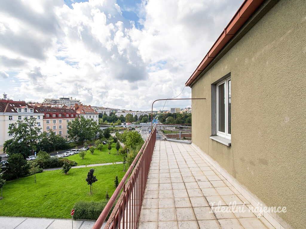 Byt se nabízí částečně vybavený. Součástí kuchyňské linky je elektrická trouba, sklokeramická deska a lednice. Přímo z kuchyně je dostupná praktická spíž. V pokojích vás zaujmou udržované parkety. Obytné prostory jsou nevybaveny, můžete si tak byt zařídit podle svých představ . Koupelna disponuje vanou, umyvadlem a pračkou. Toaleta je umístěna samostatně. Ze zádveří je přístup také k šatně. K bytu patří skutečně velká terasa, situovaná do L, která poskytuje skvělý výhled.