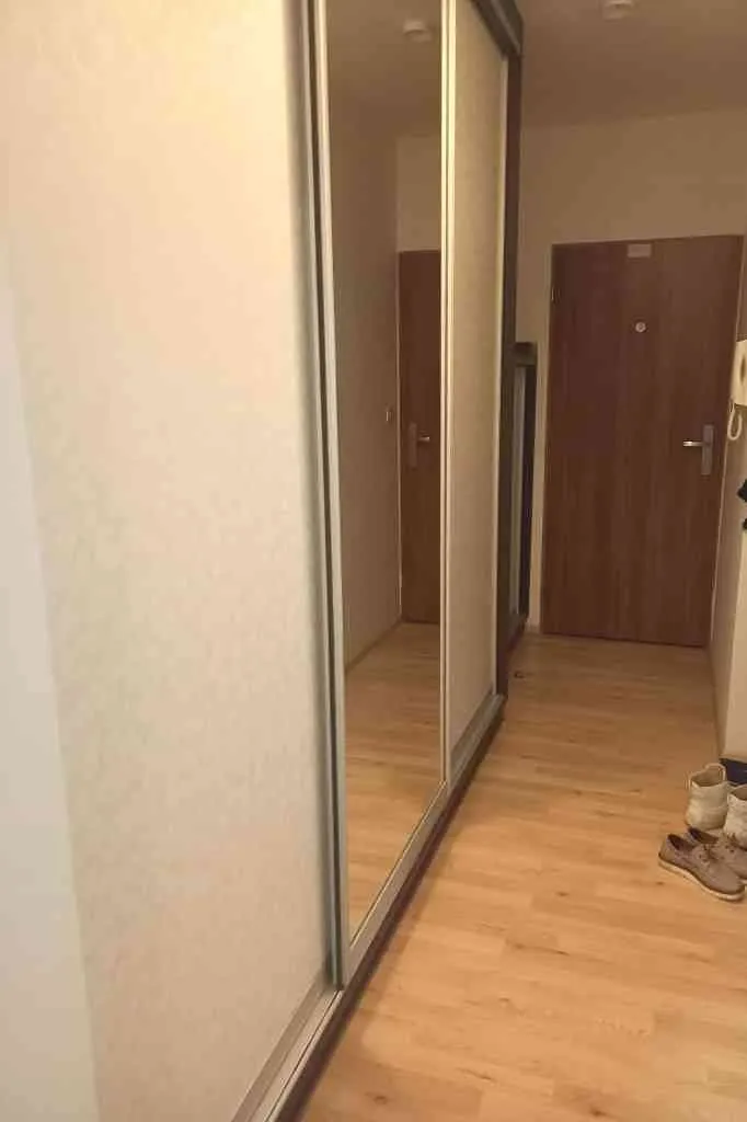 Byt byl původně řešený jako prostorná garsoniéra, kde rozloha obytné místnosti s kuchyňským koutem činila 37 m2, následně došlo k vyčleněním prostoru cca 12 m2 pro samostatnou ložnici. Oddělení je provedené pomocí lehké, dřevěné konstrukce, kterou lze nahradit pevnější, například sádrokartonovou nebo zděnou, nebo ji naopak demontovat. Ostatní plochu tvoří prostorná koupelna s vanou a WC a předsíň s vestavěnými skříněmi.