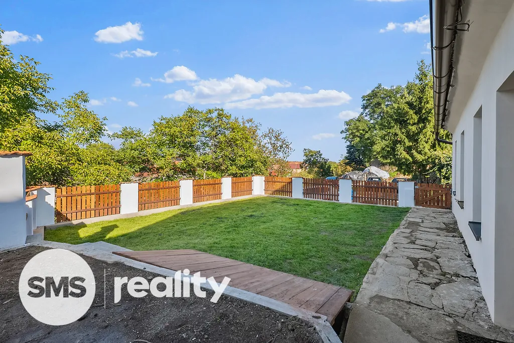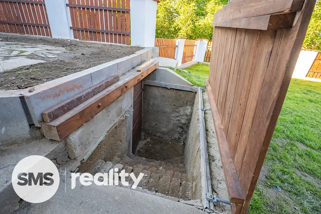 Za domem se nachází útulný dvorek s vydlážděnou plochou, který je možné využít i jako parkovací stání pro dvě auta. V přední části domu je zahrádka, sklep a další místo pro odpočinek, ideální pro posezení nebo grilování.
