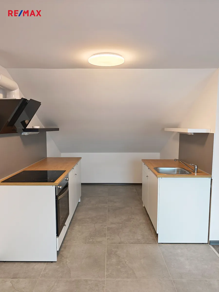 Bytová jednotka o dispozici 3+kk, v podkroví Vám nabízí vstupní chodbu s možností úložných prostor, technickou místnost, obývací místnost s kuchyňským koutem zn. Ikea a jídelním koutem. Dále koupelnu (s vanou, umyvadlem, toaletou a místem na pračku a sušičku) a dvě samostatné neprůchozí ložnice.