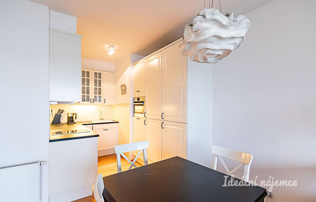 Byt je plně vybavený, takže se můžete ihned nastěhovat bez nutnosti dalšího zařizování. Moderní kuchyň disponuje lednicí s mrazákem, elektrickou a mikrovlnnou troubou, sporákem, digestoří a dostatkem úložného prostoru.