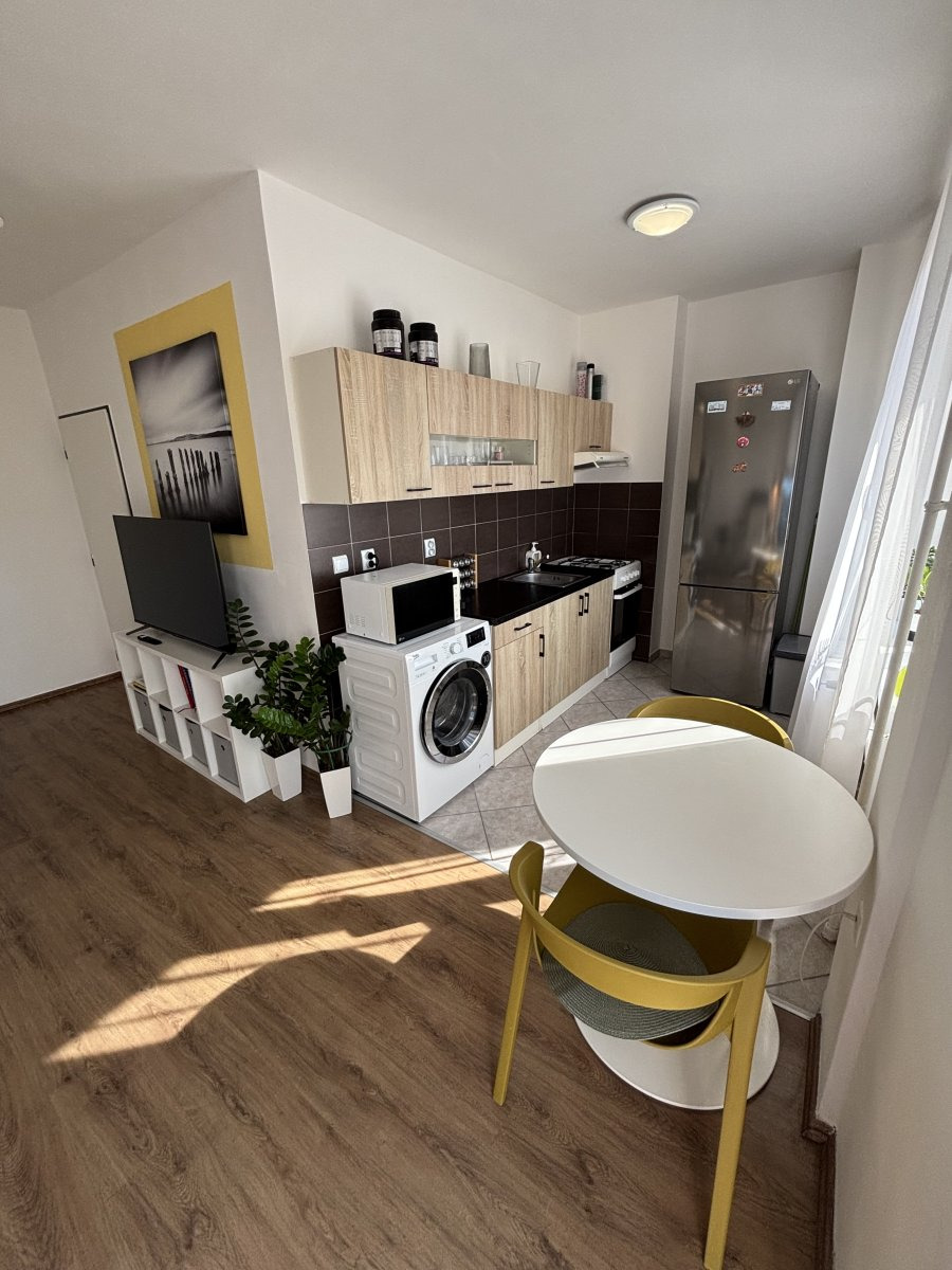 Byt je po rekonstrukci, kuchyně je vybavena kuchyňskou linkou s plynovým sporákem, digestoří, lednicí a pračkou.