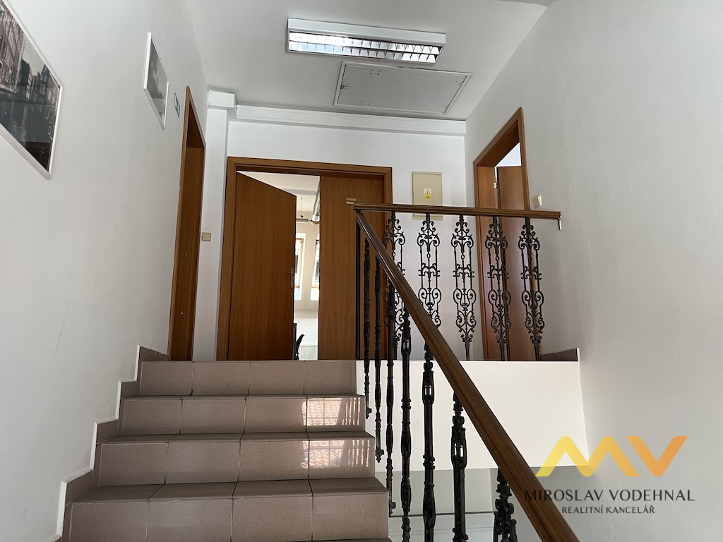 V přízemí se nachází nebytový prostor o výměře 47 m² s vlastní výlohou a vstupem přímo z ulice, který je ideální pro obchod, kontaktní místo nebo kancelář. Prostor je rozdělen na přední část vhodnou jako prodejní plocha či klientská zóna a zadní část využitelnou jako sklad nebo zázemí, k dispozici je sociální zařízení přístupné z chodby domu. Díky poloze na frekventované ulici nabízí výbornou viditelnost a dostupnost pro zákazníky.
