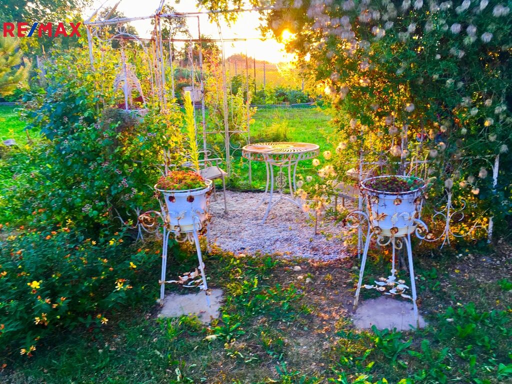 Dům má samostatnou polohu na kraji vesnice, ale není to samota. Třídílná zahrada skýtá větší množství romantických posezení, včetně altánu a dalších odpočinkových míst dle postupu denního světla, jako stvořených pro relaxaci a načerpání duševní pohody. Na části pozemku se pasou koně sousedů (věc příští domluvy).