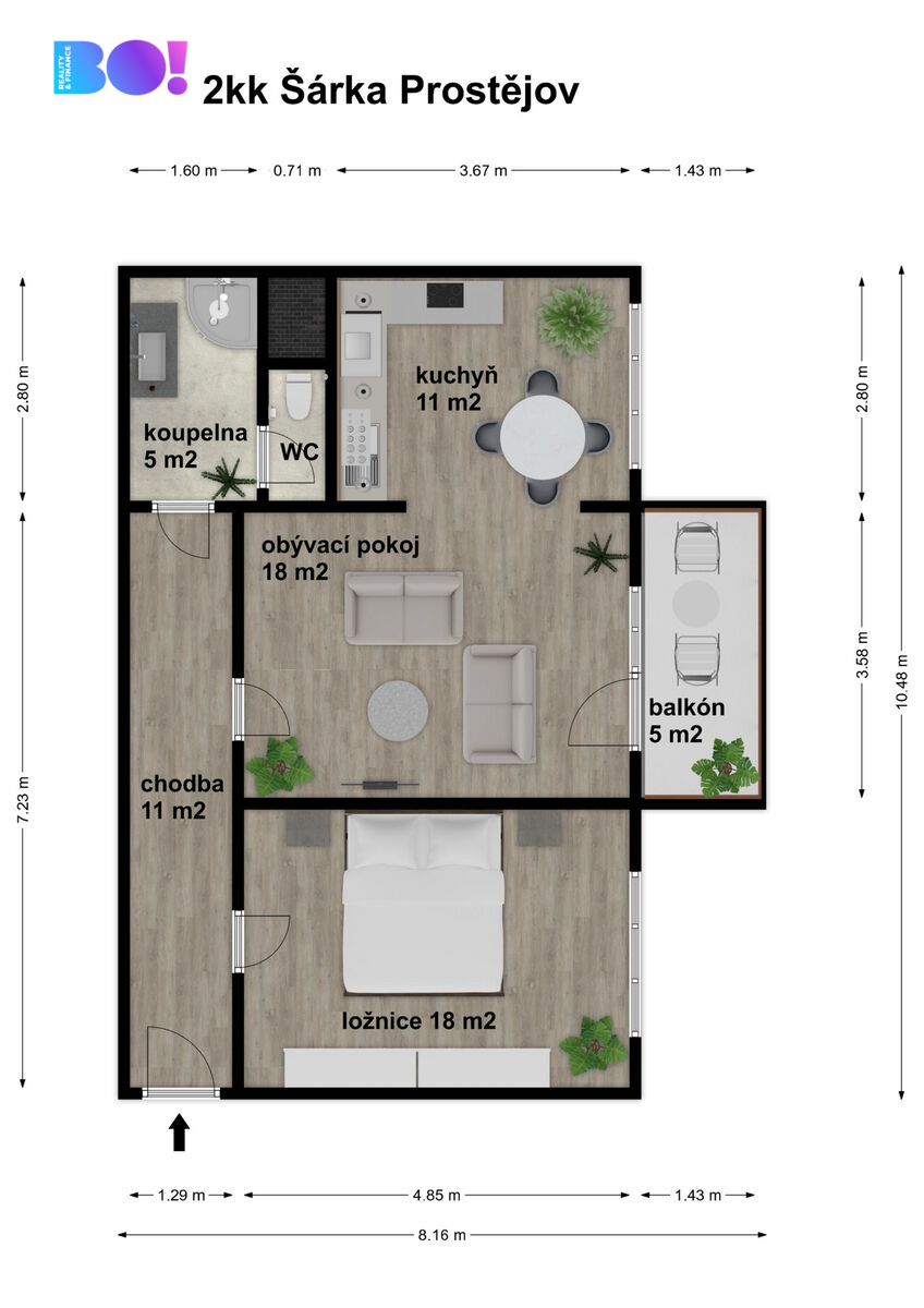 K bytu patří i sklepní kóje a kolárna, a z balkonu si můžete vytvořit útulné posezení pro ranní kávu či večerní relax.