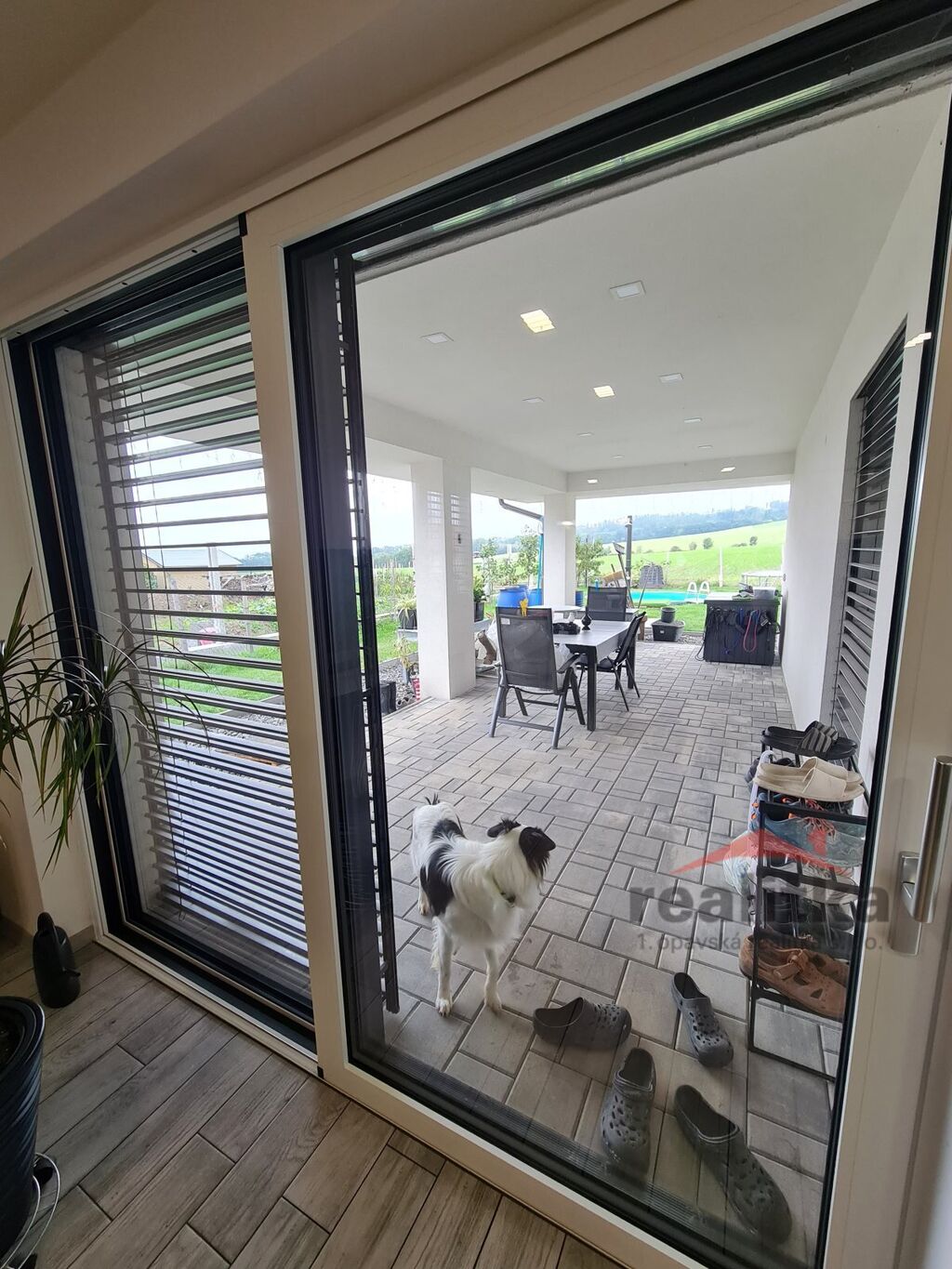 Nabízíme k prodeji novostavbu rodinného domu ve Štáblovicích, okr. Opava. Tento bungalov byl kolaudován v r. 2022, některé jeho části a systémy byly dokončeny teprve nedávno. K plnému dokončení chybí pouze zámková dlažba před domem (část stavebního materiálu je již nakoupena) a dodělání zahradního domku (je hotový dřevěný skelet). V domě je využita řada moderních technologií, např. ovládání venkovních žaluzií, nebo zónového podlahového topení mobilem. Na míru vyhotovená kuchyňská linka s ostrůvkem je vybavena myčkou nádobí, indukční varnou deskou, horkovzdušnou troubou, mikrovlnkou a americkou lednicí. Je zde kamerový zabezpečovací systém s čidly pohybu. Stavba vyhovuje nejvyšším požadavkům na energetickou náročnost. Obvodové zdi jsou z cihelného systému Porotherm 30 cm, zatepleno fasádním polystyrenem 20 cm, okna s trojskly, stropy zatepleny minerální izolací 33 cm, střešní krytina - tašky Tondach. O vytápění a ohřev vody se stará nové tepelné čerpadlo. Interiér tvoří 3 pokoje, velký obývací prostor s jídelnou a kuchyní, koupelna 2 x WC, komora, sklad a prostorná garáž s dálkově ovládanými vraty. Z terasy je krásný výhled na východní stranu do otevřené krajiny - tato část katastru Štáblovice je vedena jako zemědělská půda a není zde možná další výstavba. Obec je velmi klidná, je zde mateřská školka a první stupeň základní školy. Vzdálenost do centra Opavy je cca 10 km, což je necelých 14 min. jízdy automobilem. V okolí jsou lesy s cyklostezkami, rybník a mnoho dalších zajímavých míst.