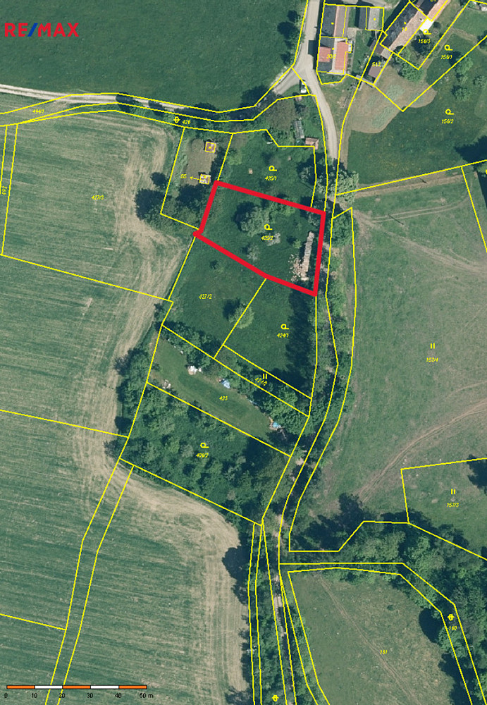 Stavební pozemek 1 098 m² v malebné obci Damíč – klid, příroda a Šumava na dosah.