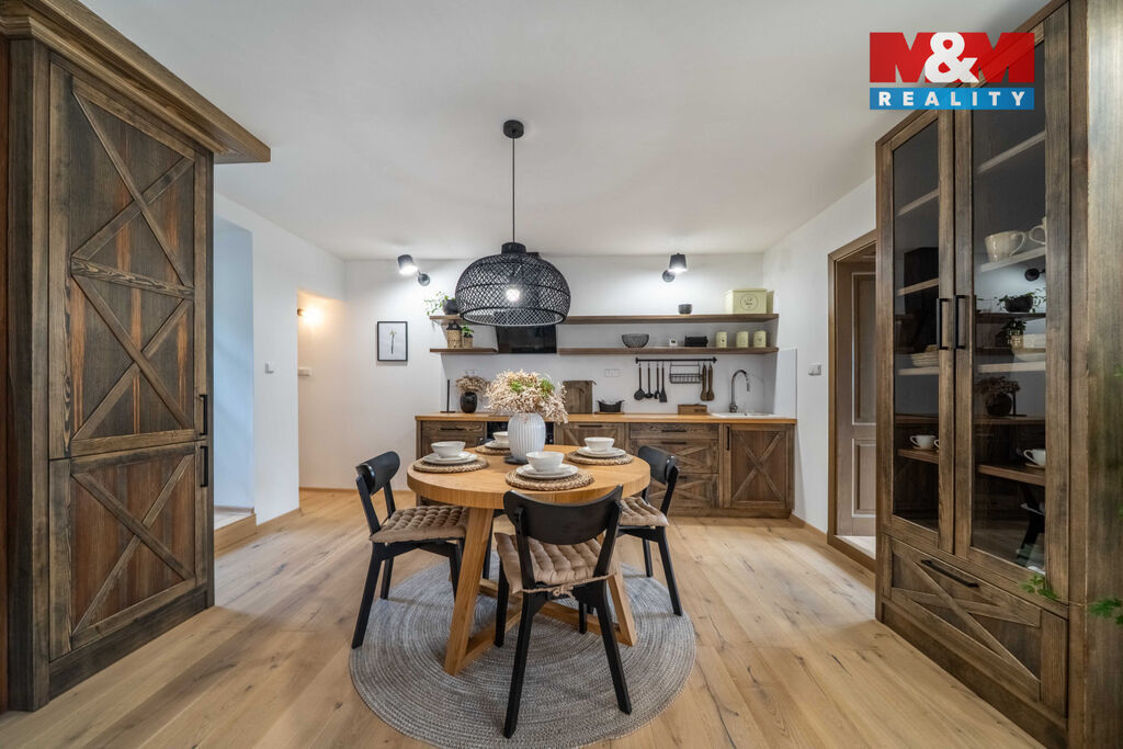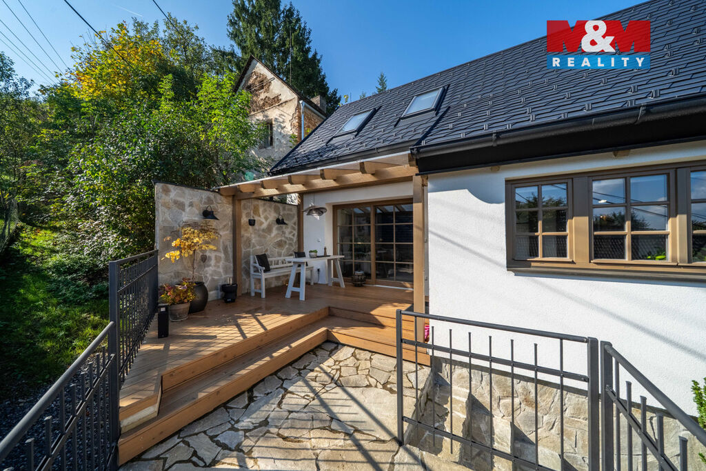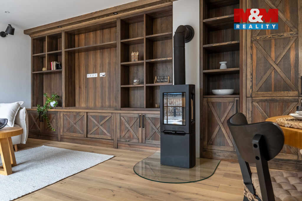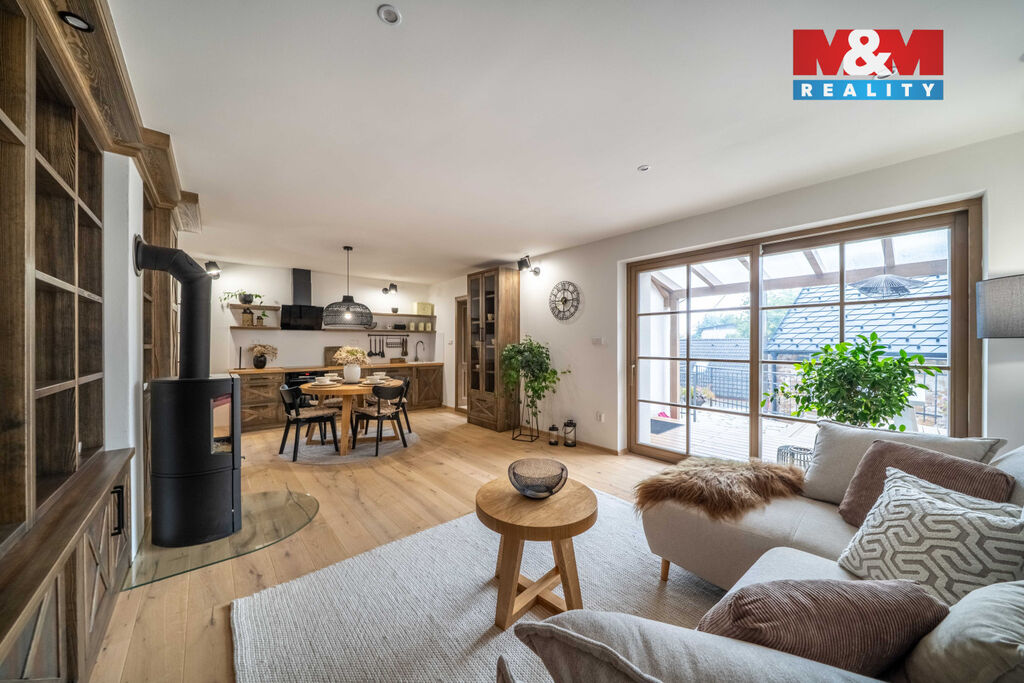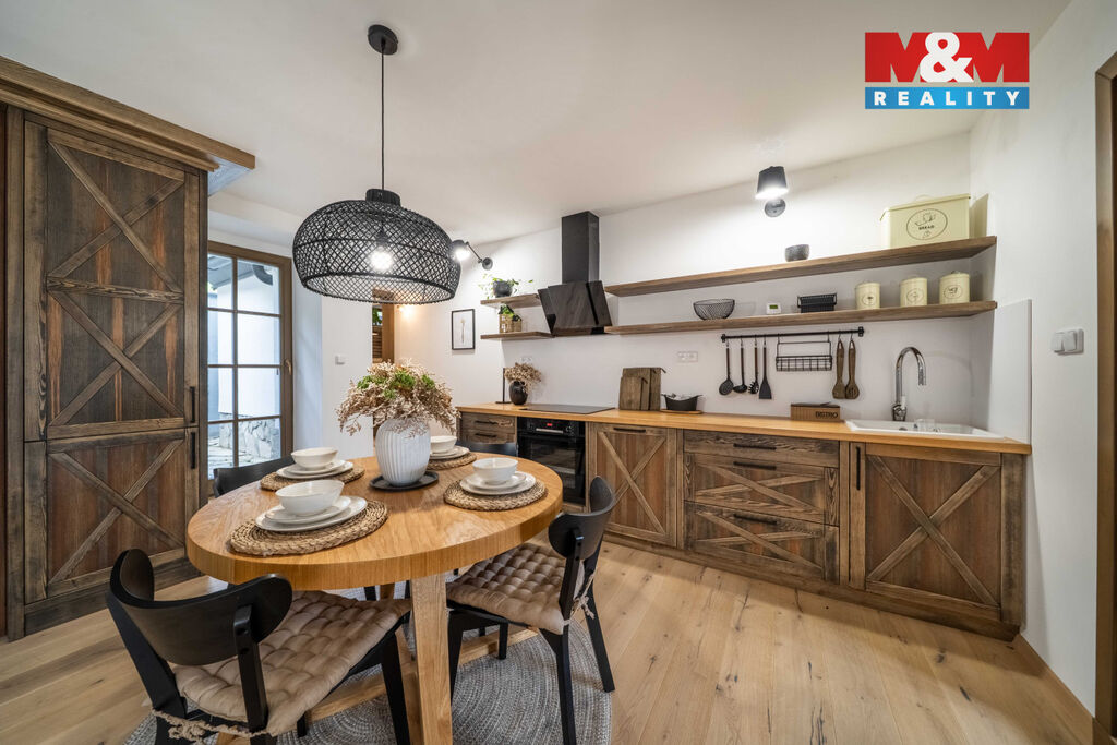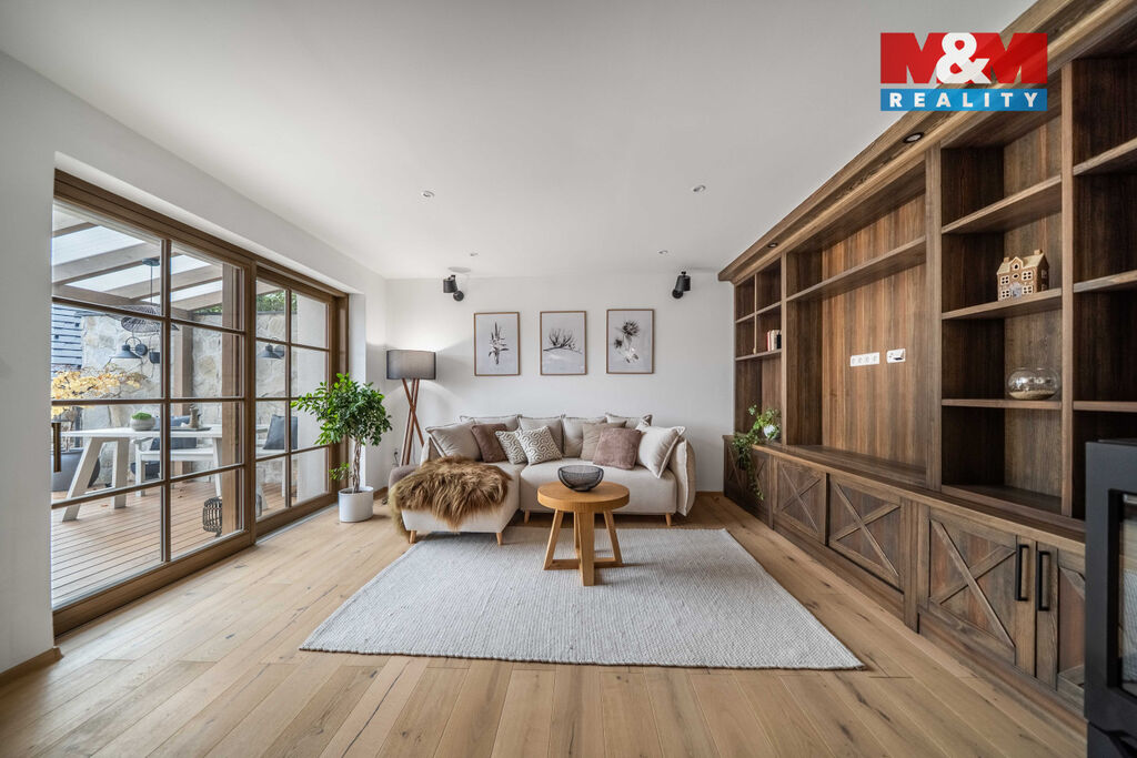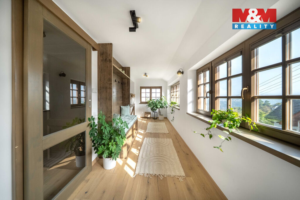 Nabízíme k prodeji jedinečný rodinný dům po rozsáhlé rekonstrukci v obci Račice nad Berounkou, pouhých 40 minut od Prahy-Zličína. Z terasy úchvatný výhled na Berounku a okolní křivoklátské lesy. Dům prošel kompletní obnovou – nové zdivo, podlahy, elektroinstalace, rozvody vody a odpadu, zateplení. Vytápění i ohřev vody zajišťuje tepelné čerpadlo, doplněné o krb v kuchyni. Použité materiály – dubové a smrkové podlahy, kuchyně z masivu, KVH hranoly, eurookna s HS portálem a žaluziemi Plisse, střecha s PIR izolací a hliníkovou krytinou PREFA – podtrhují vysokou kvalitu a řemeslné zpracování. Dispozice 4+kk nabízí komfortní prostor pro rodinu. Obytná část je propojena se zahradou a terasou s dechberoucím výhledem. Na zahradě je venkovní ohniště, kamenné schodiště i venkovní sprcha. V podzemí vinný sklípek s vinotékou. Na pozemku velká stodola, vhodná pro přestavbu na ateliér, dílnu či garáž. Před domem parkovací stání. Račice nad Berounkou leží v srdci CHKO Křivoklátsko, v dosahu řeky.