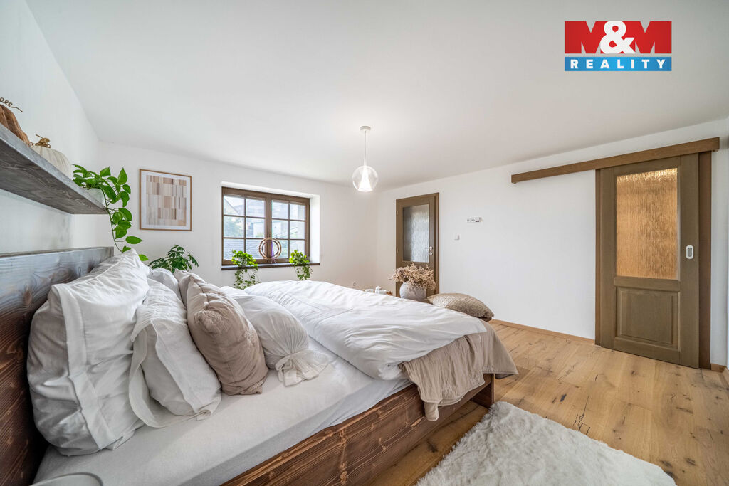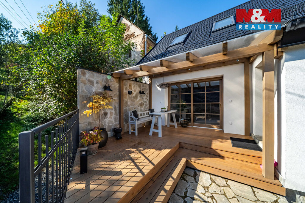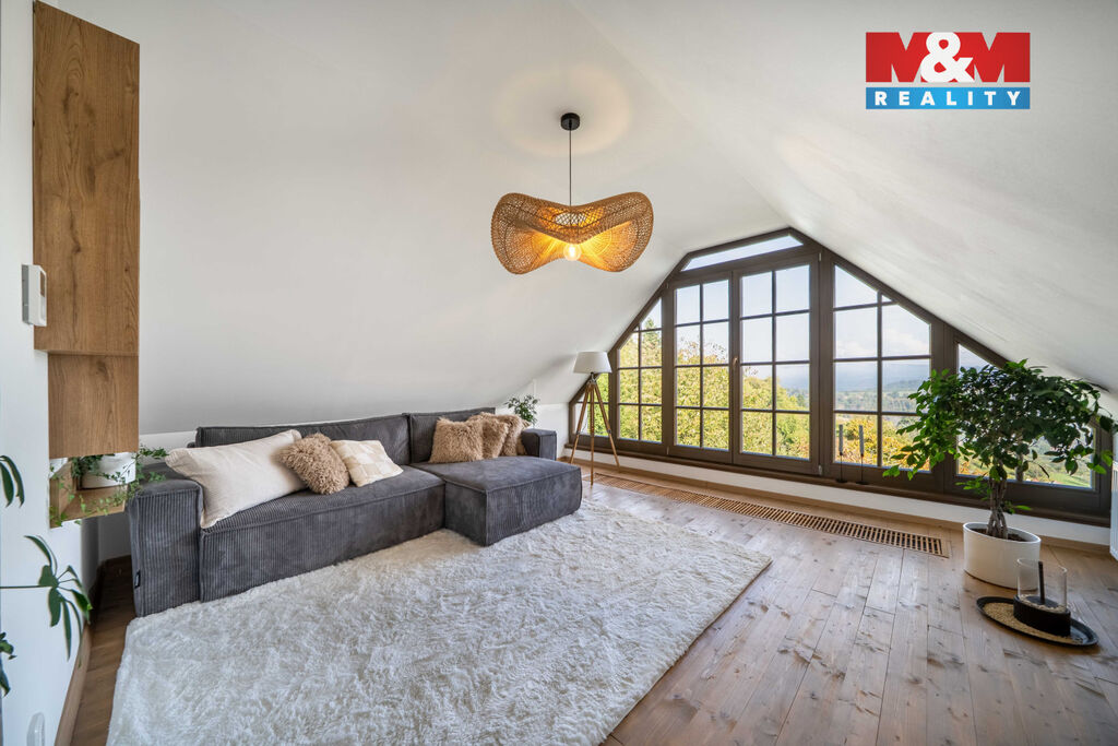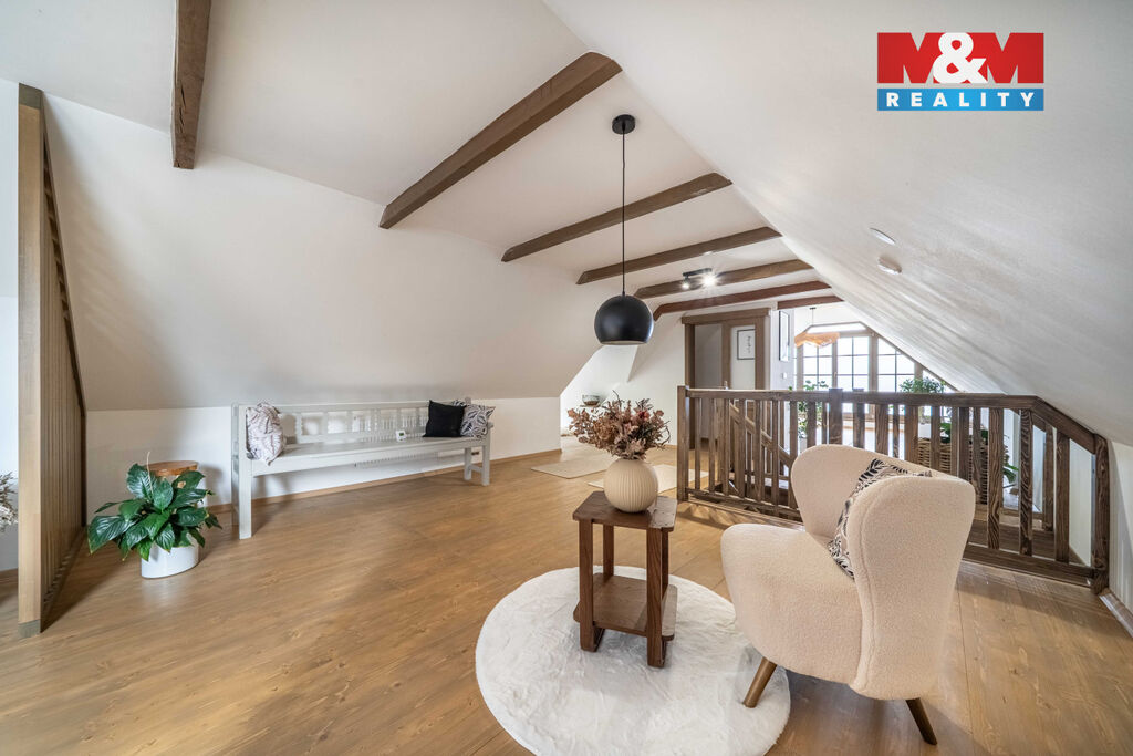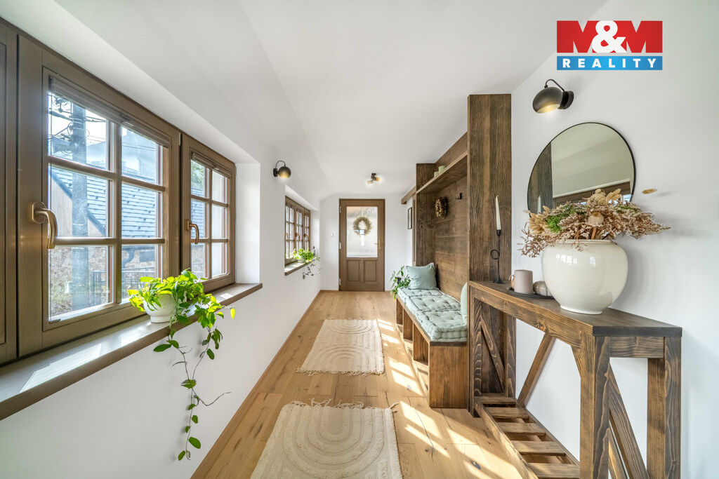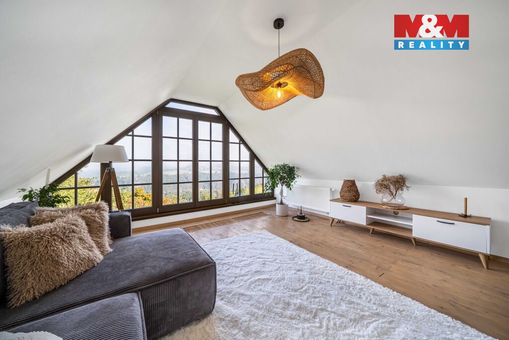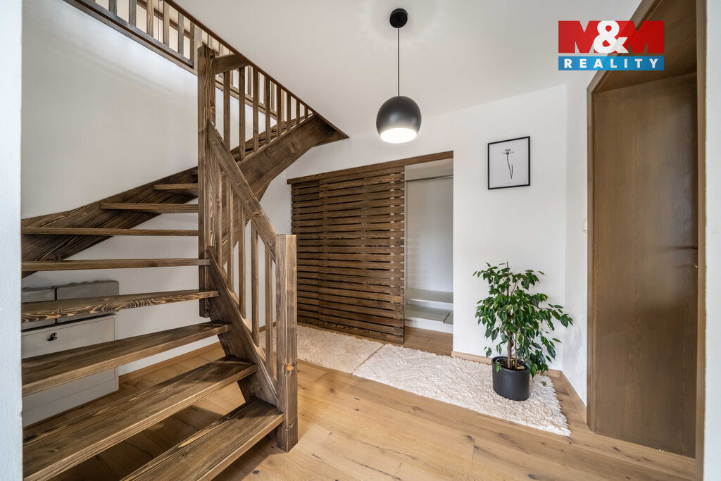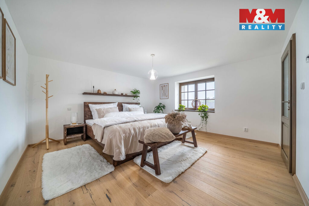 Nabízíme k prodeji jedinečný rodinný dům po rozsáhlé rekonstrukci v obci Račice nad Berounkou, pouhých 40 minut od Prahy-Zličína. Z terasy úchvatný výhled na Berounku a okolní křivoklátské lesy. Dům prošel kompletní obnovou – nové zdivo, podlahy, elektroinstalace, rozvody vody a odpadu, zateplení. Vytápění i ohřev vody zajišťuje tepelné čerpadlo, doplněné o krb v kuchyni. Použité materiály – dubové a smrkové podlahy, kuchyně z masivu, KVH hranoly, eurookna s HS portálem a žaluziemi Plisse, střecha s PIR izolací a hliníkovou krytinou PREFA – podtrhují vysokou kvalitu a řemeslné zpracování. Dispozice 4+kk nabízí komfortní prostor pro rodinu. Obytná část je propojena se zahradou a terasou s dechberoucím výhledem. Na zahradě je venkovní ohniště, kamenné schodiště i venkovní sprcha. V podzemí vinný sklípek s vinotékou. Na pozemku velká stodola, vhodná pro přestavbu na ateliér, dílnu či garáž. Před domem parkovací stání. Račice nad Berounkou leží v srdci CHKO Křivoklátsko, v dosahu řeky.