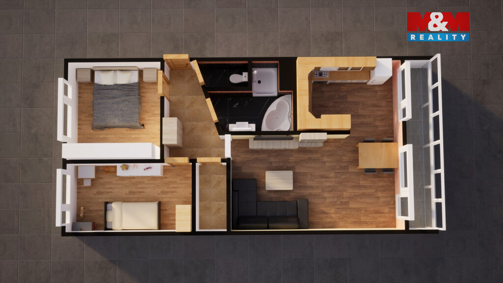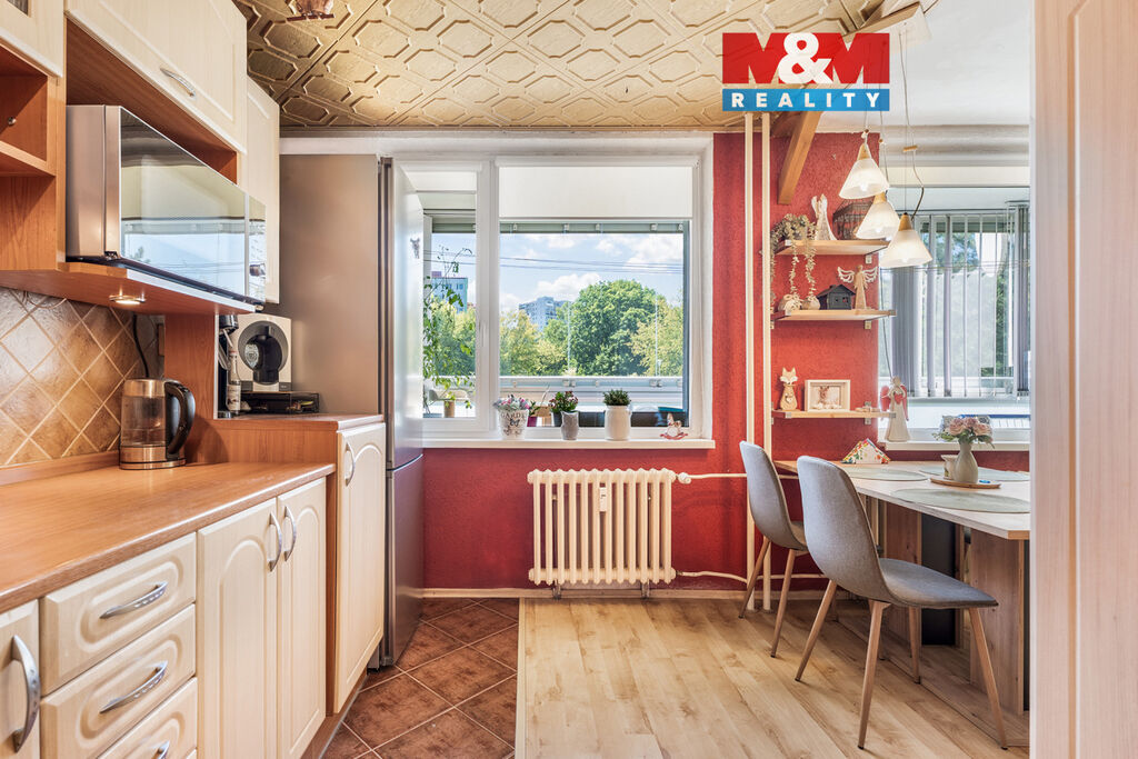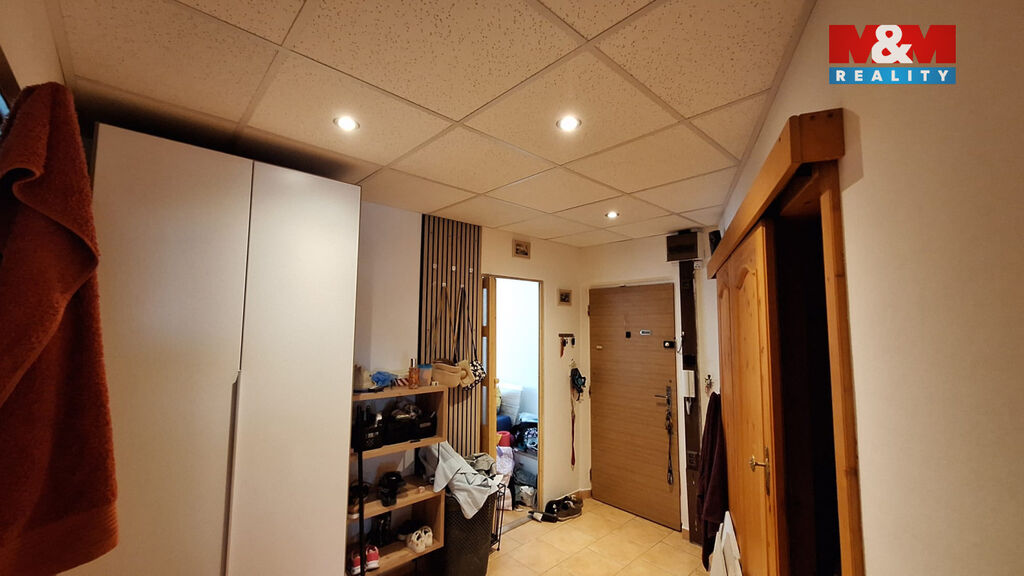 V koupelně se nachází vana, sprchový kout a umyvadlo, WC je oddělené. Kuchyň navazuje na obývací pokoj a díky velké lodžii má dostatek světla a výhled do zeleně. Okna směřují na parkovou zeleň, takže byt poskytuje dostatek klidu a soukromí. V domě je výtah a okolí nabízí plnou občanskou vybavenost – v docházkové vzdálenosti je několik supermarketů, mateřská i základní škola, zastávka MHD a sportovní areál. Financování hypotékou, Vám rádi zajistíme.